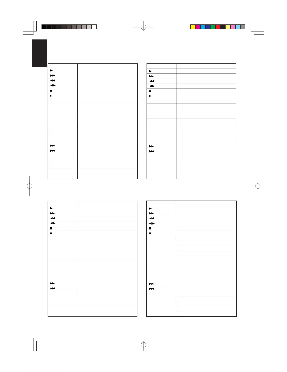 The following are the functions assigned to control buttons after the