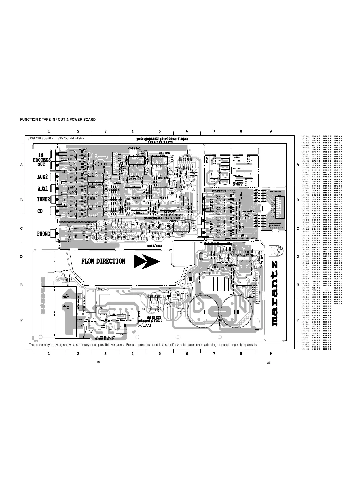 This assembly drawing shows a summary of all possible versions. For components used in a specific version see schematic diagram and respective parts list