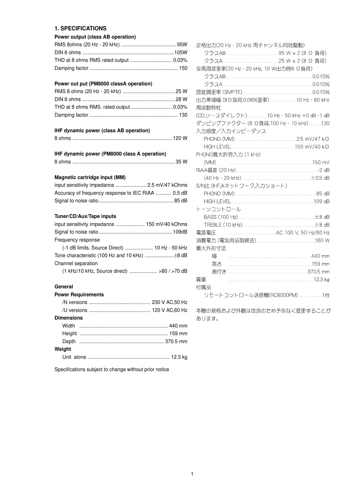 1. SPECIFICATIONS