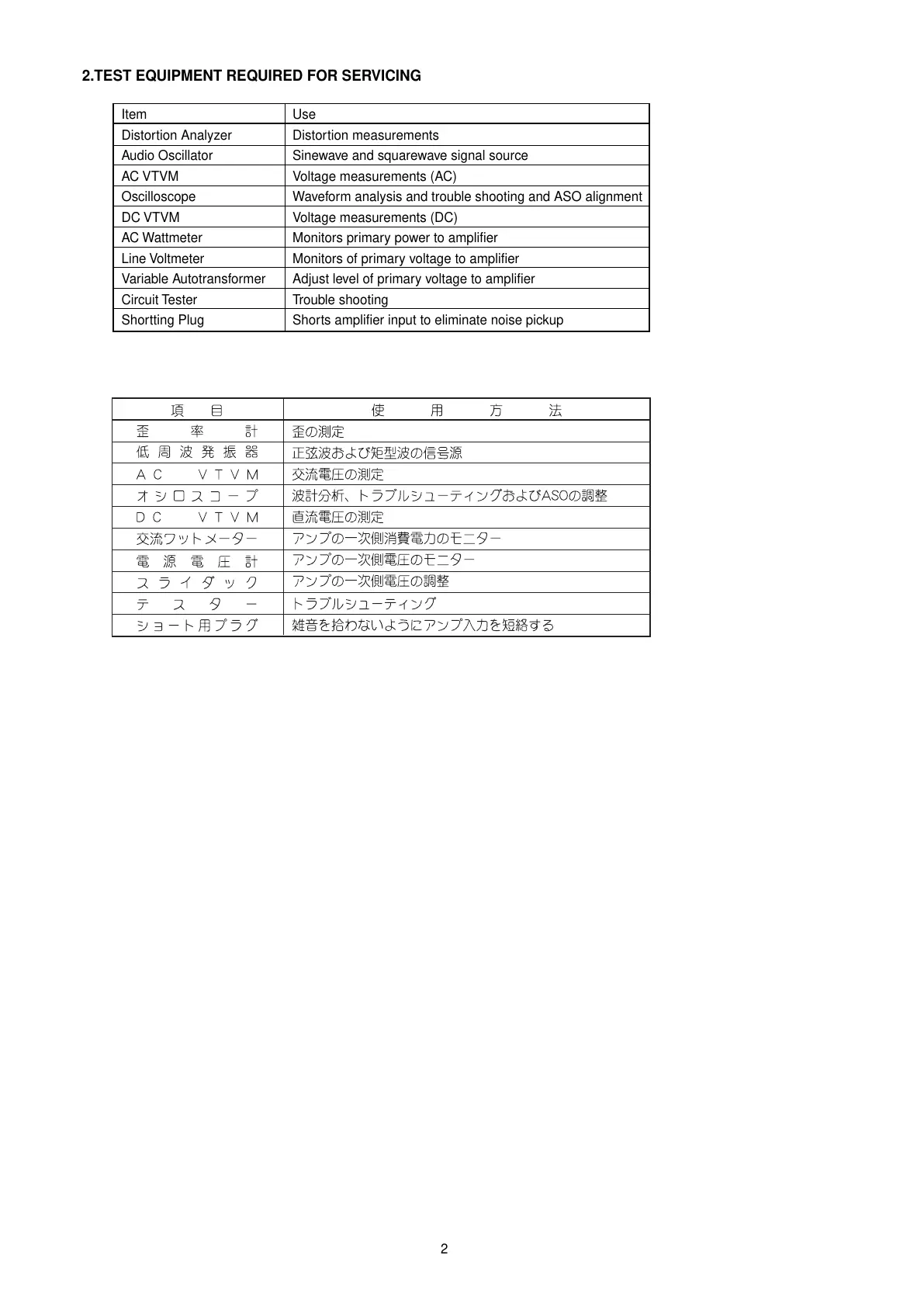 2.TEST EQUIPMENT REQUIRED FOR SERVICING