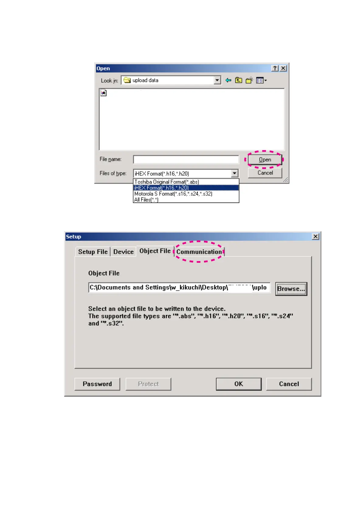 Choose 12. iHEX Fomat[*.h16,*.h20] in Files of type.