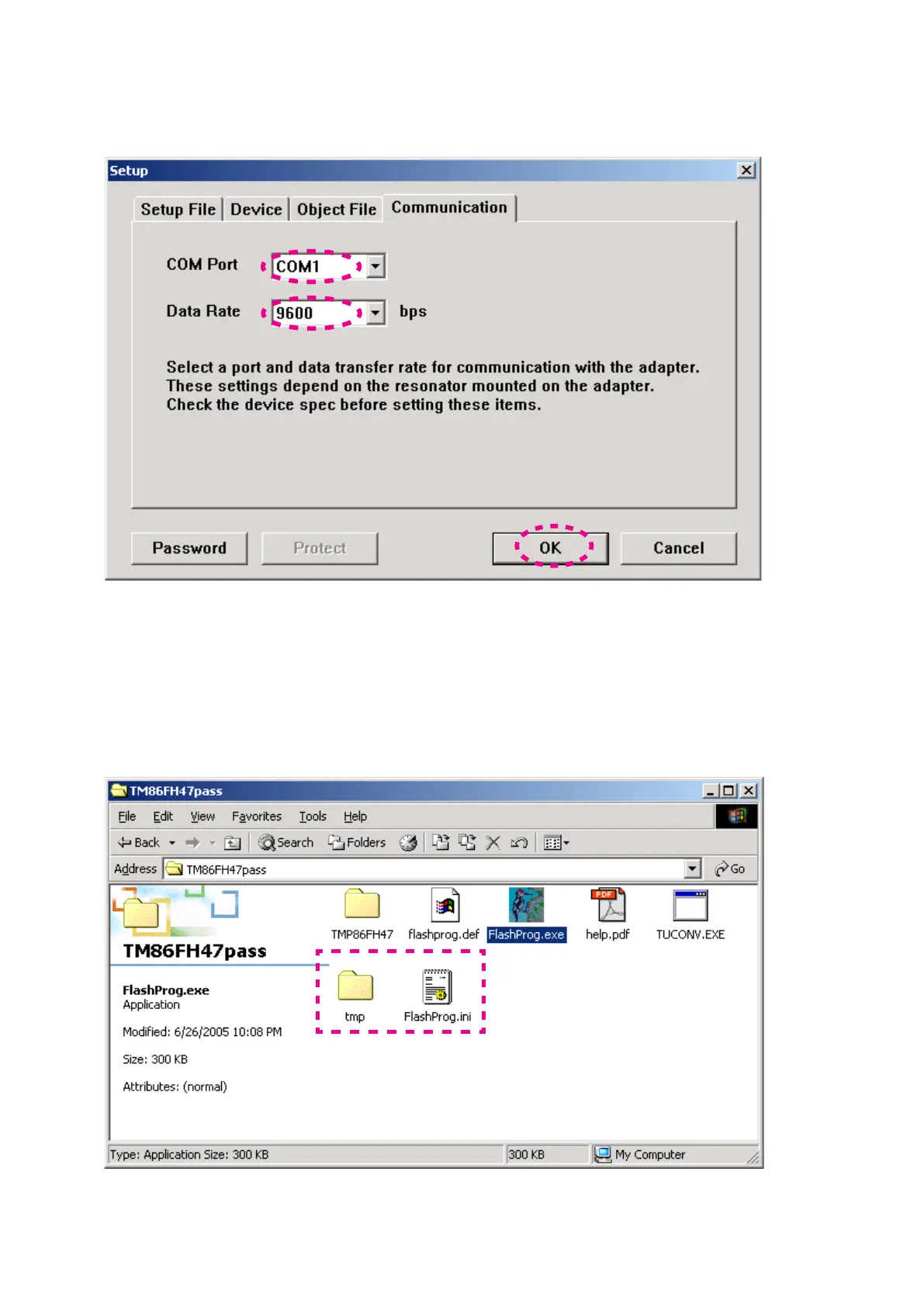 tmpフォルダとFlashProg.iniファイルは削除して設定を