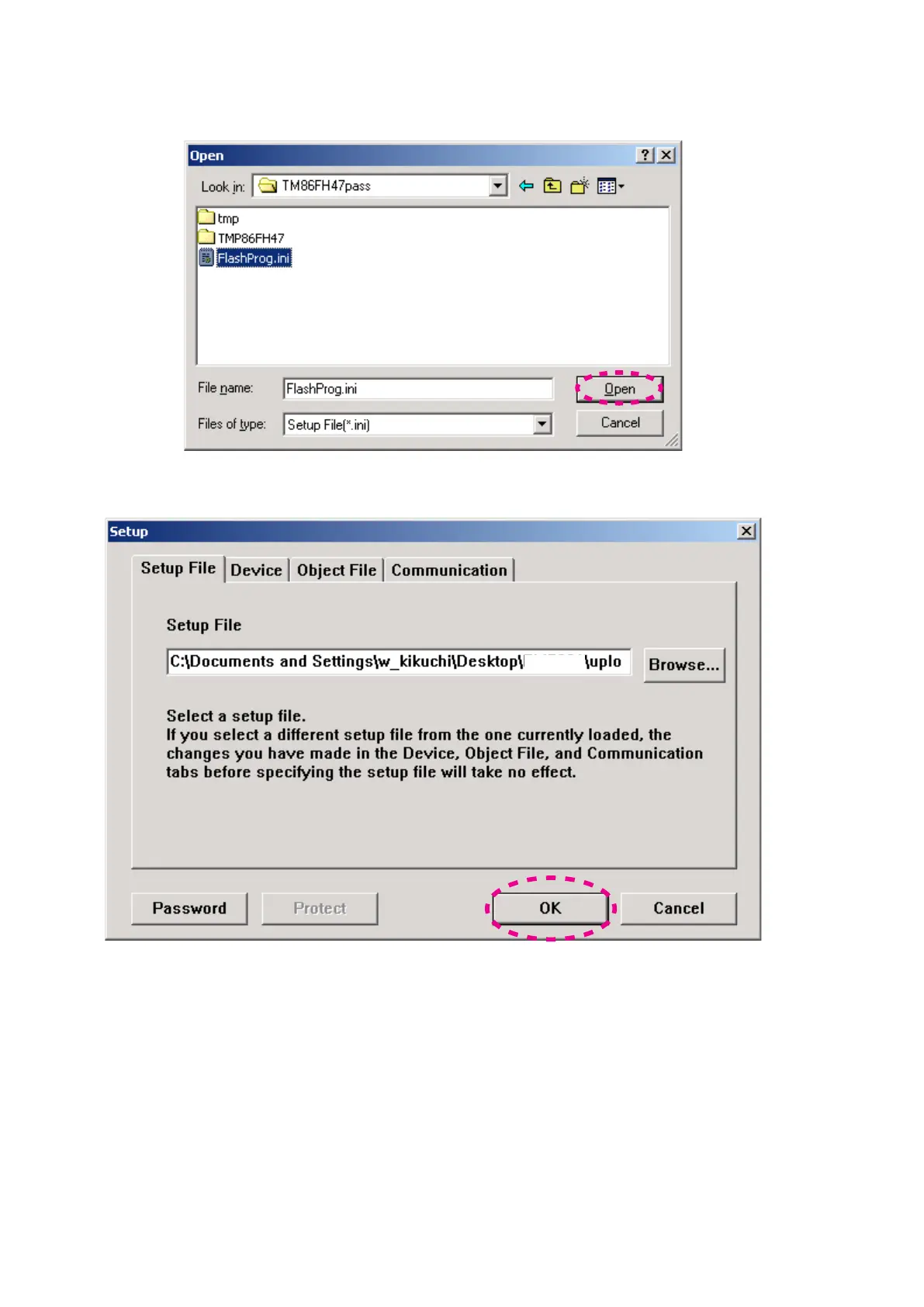TM86FH47passフォルダから18. FlashProg.iniを選