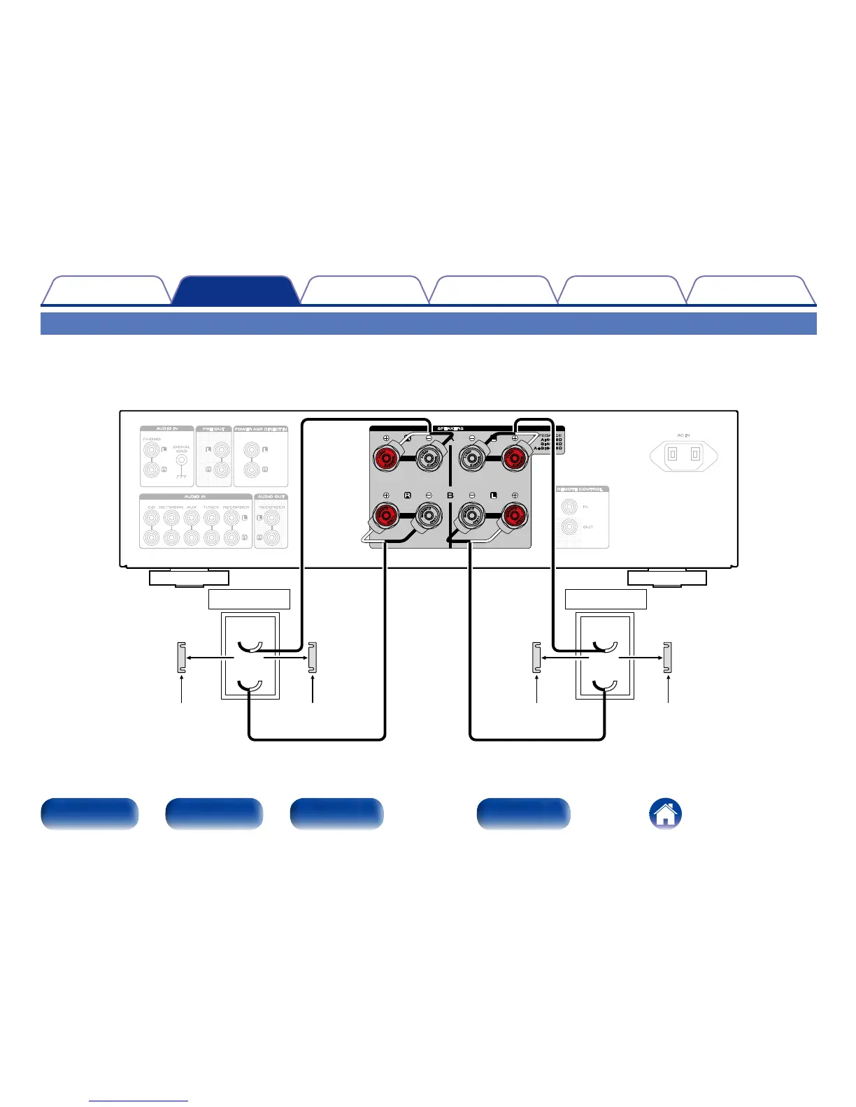 •When bi-wiring with bi-wireable speakers, connect the mid and high range terminals to SPEAKERS A (or SPEAKERS B), the low range terminals to
