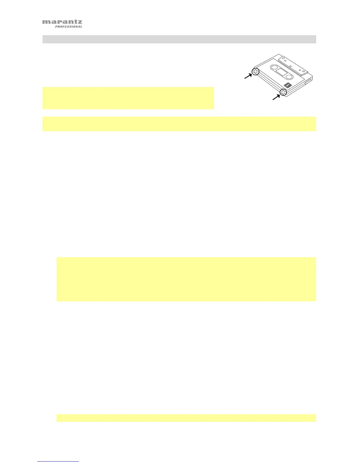 Tip: To record to a cassette which no longer has a plastic strip, use adhesive tape to cover the
