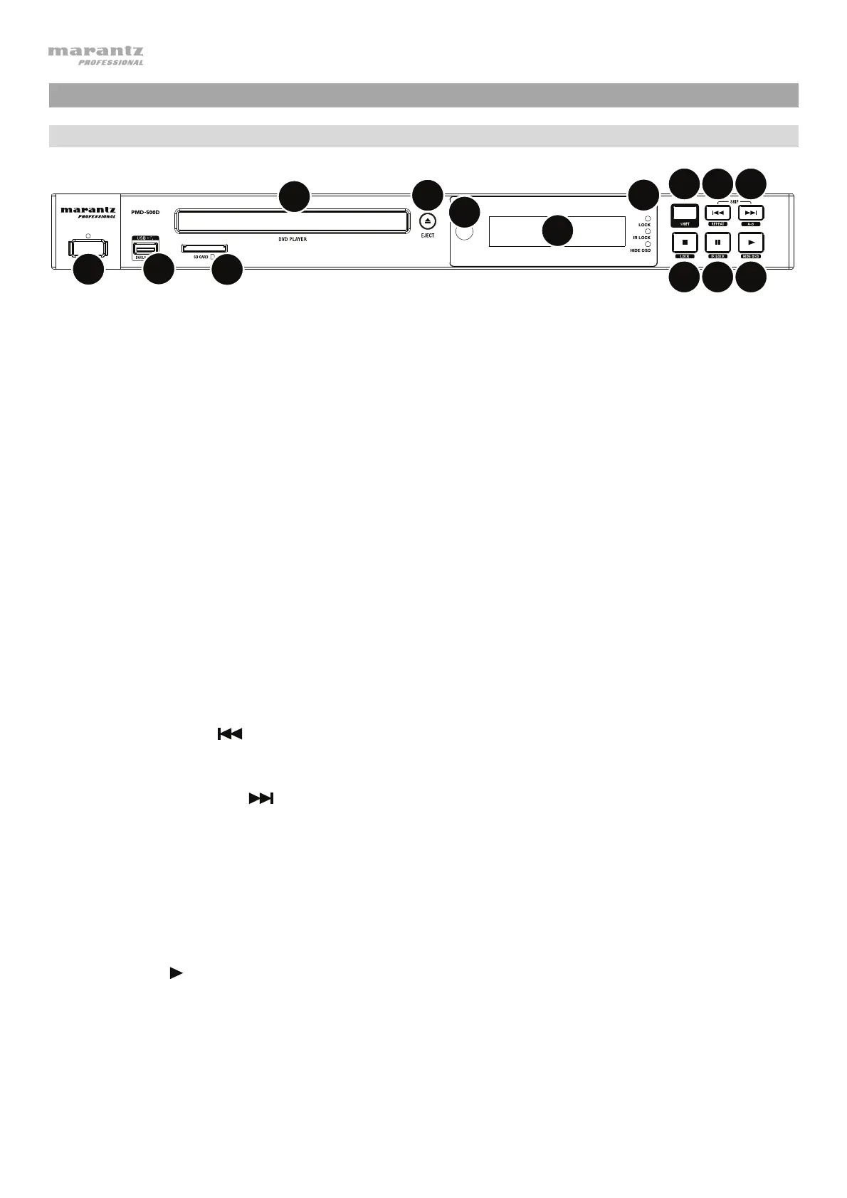 12. Parar (): Pulse este botón para detener la reproducción. Mantenga pulsado Shift y pulse este botón