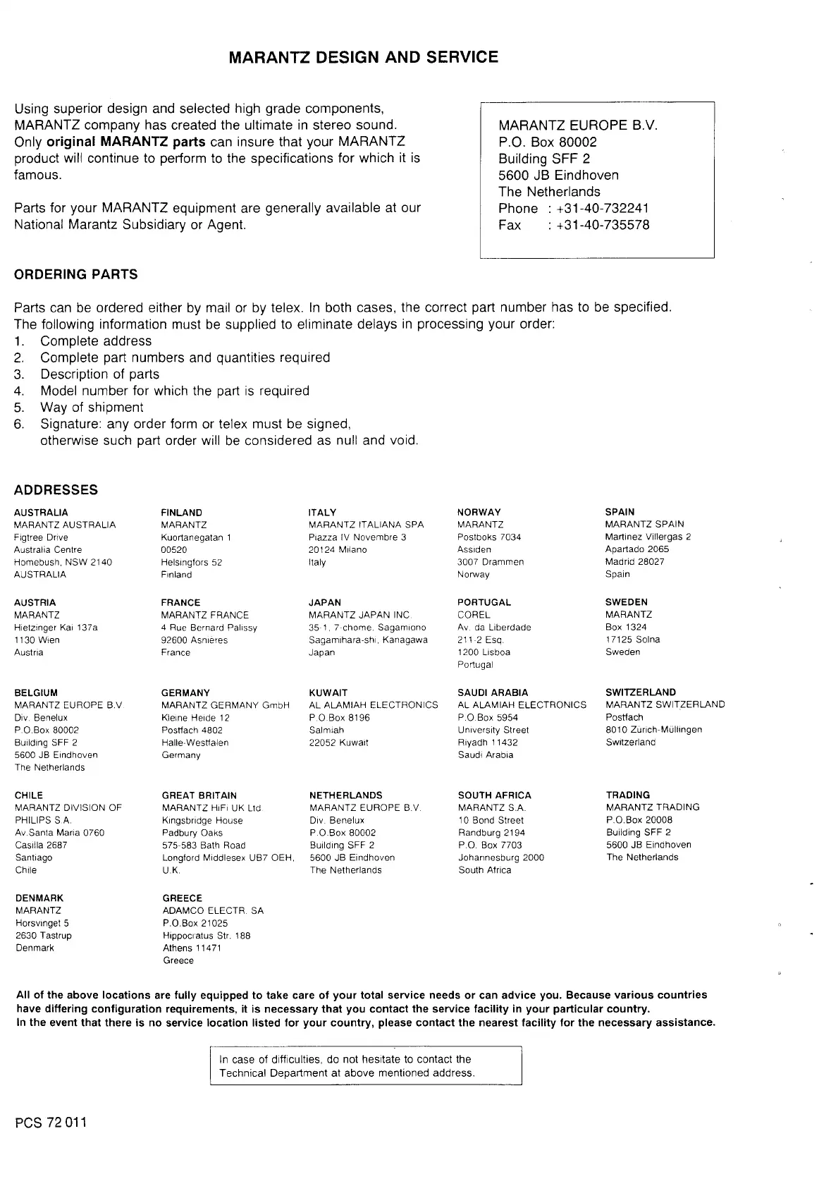 Marantz PMD 510 - ORDERING PARTS