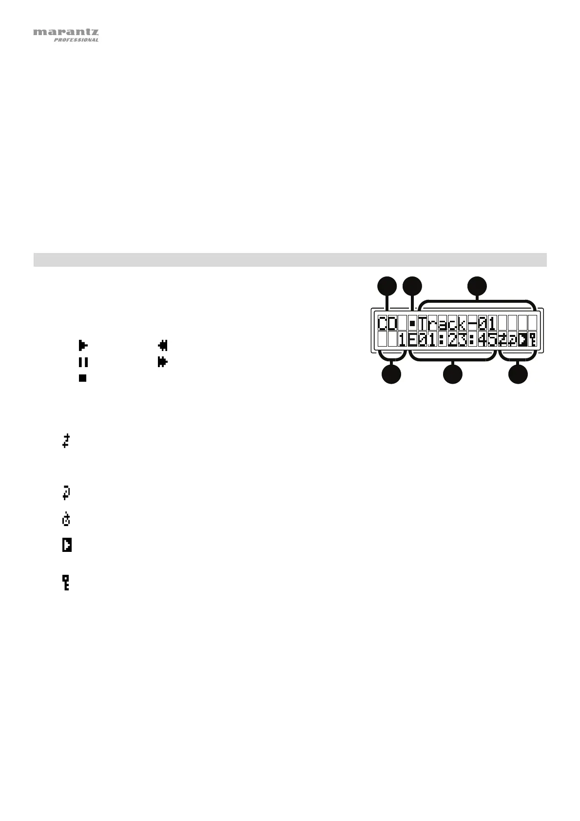 6. Durée : En mode CD, SD, et USB, ceci indique le temps écoulé, le temps restant de la piste, total écoulé time, ou le