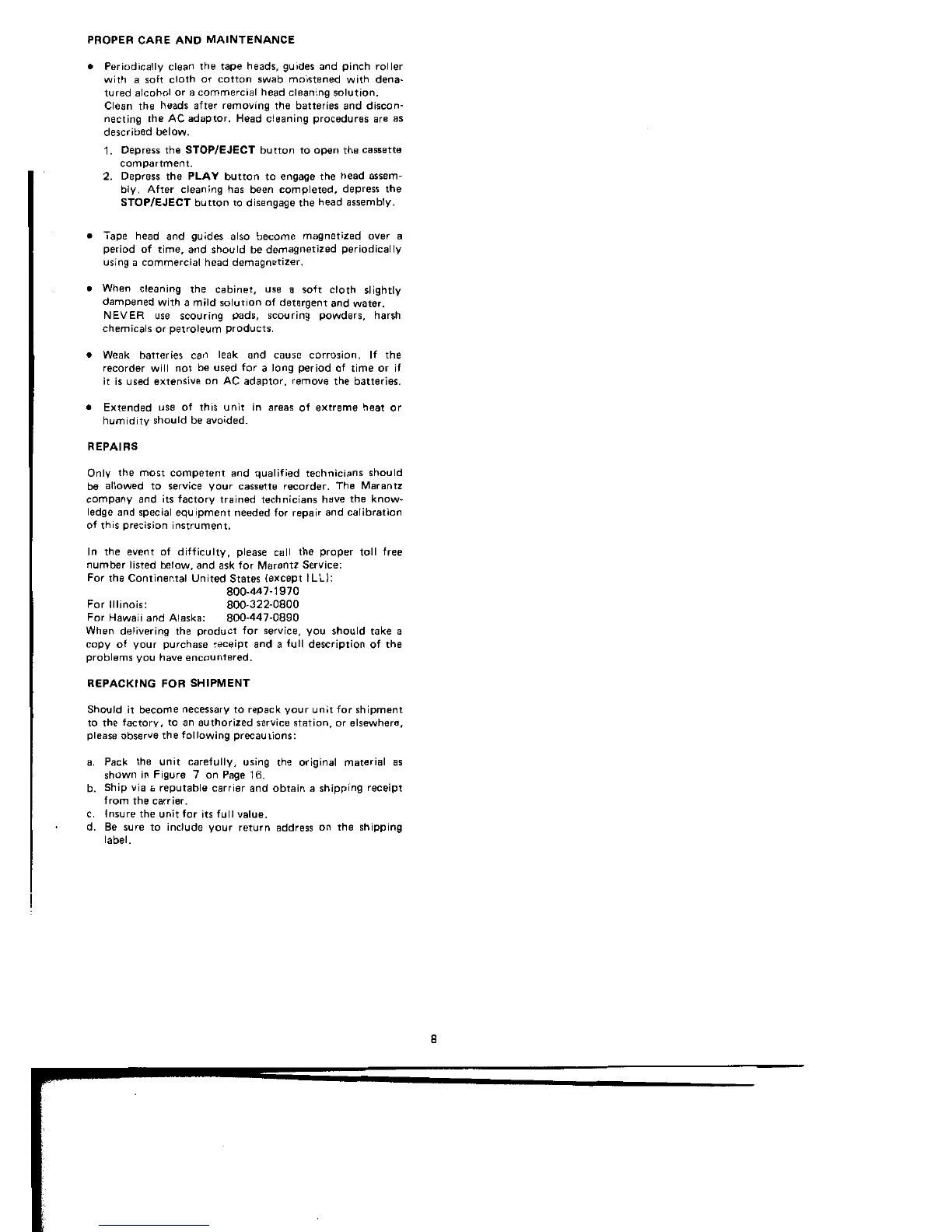 Marantz PMD222 - Care and Maintenance; Service and Repair Information