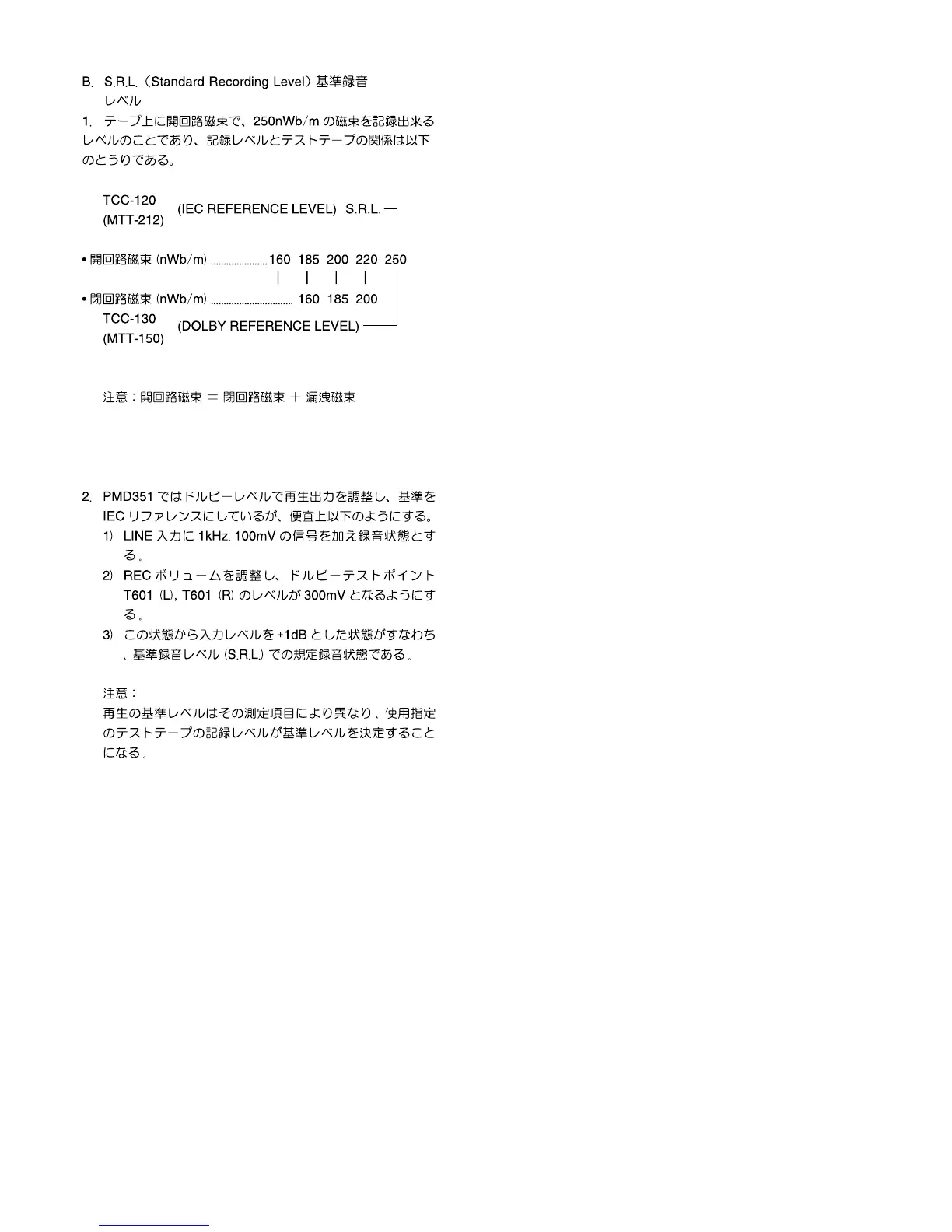 1. The Standard Recording Level is a signal of 250nWb/m