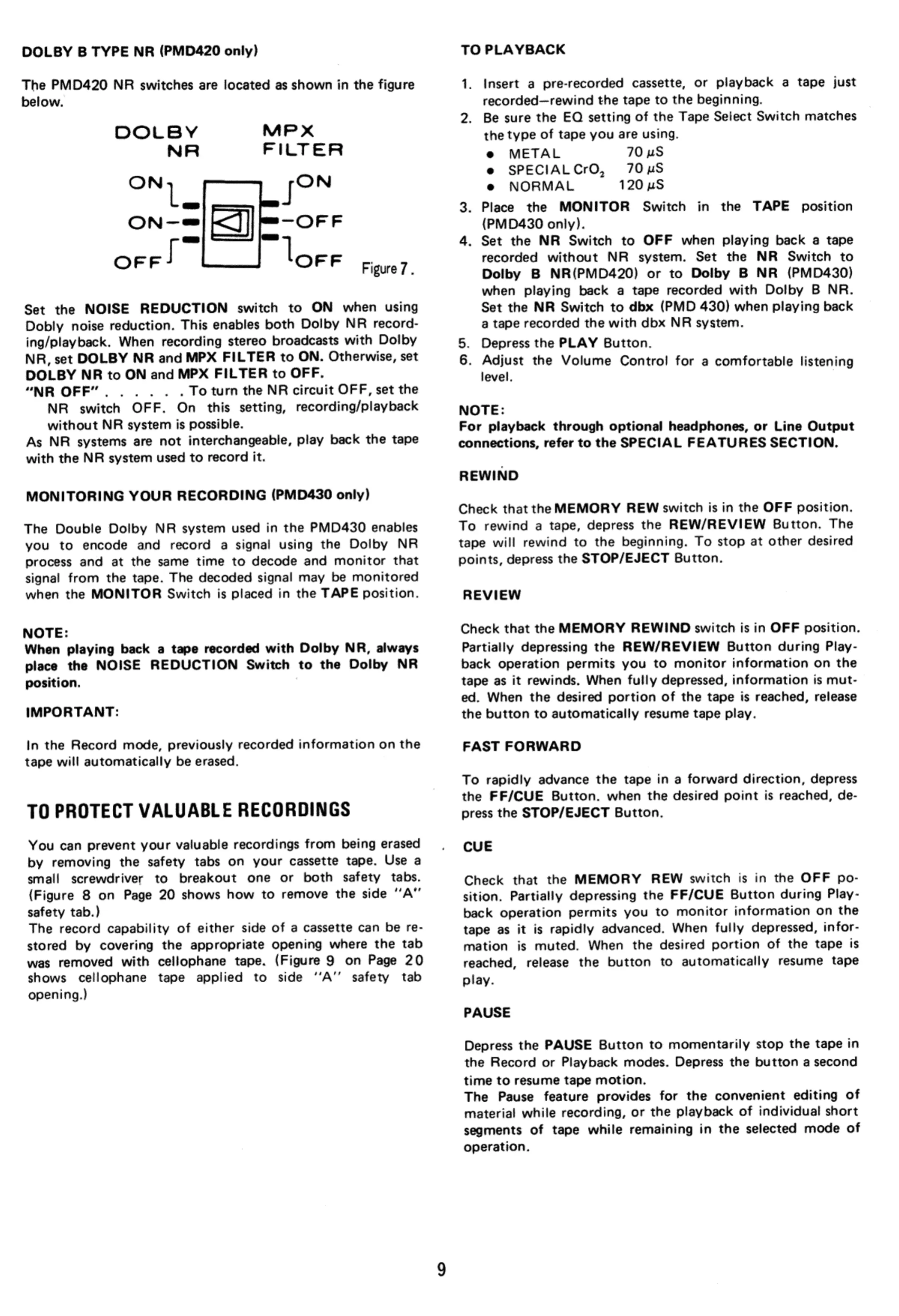 Marantz pmd430 - PLAYBACK AND TAPE HANDLING; PLAYBACK PROCEDURES; TAPE MANIPULATION
