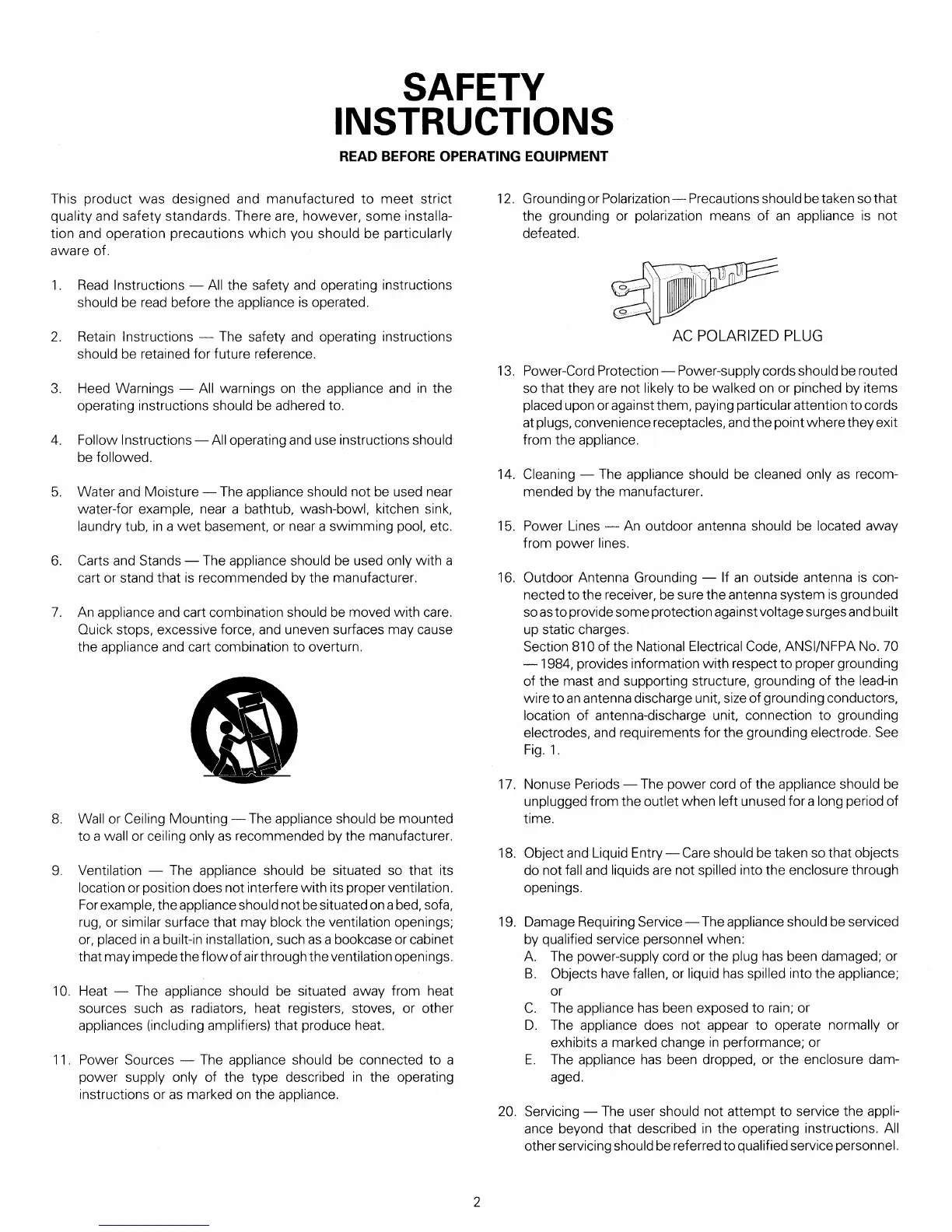 Marantz PMD501 - Safety Instructions; Read Before Operating Equipment