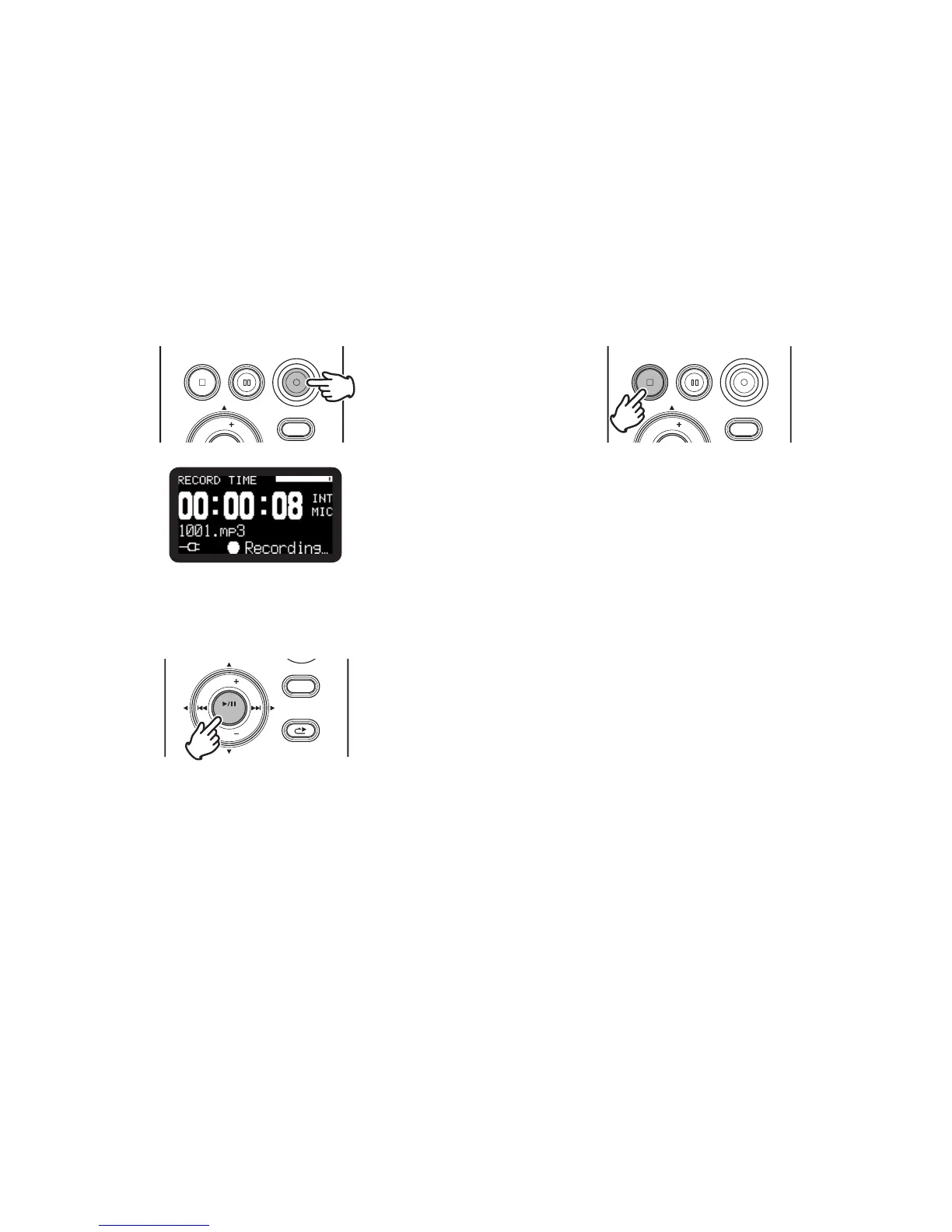 Press the 1/3/ENTER button to play the just recorded file via