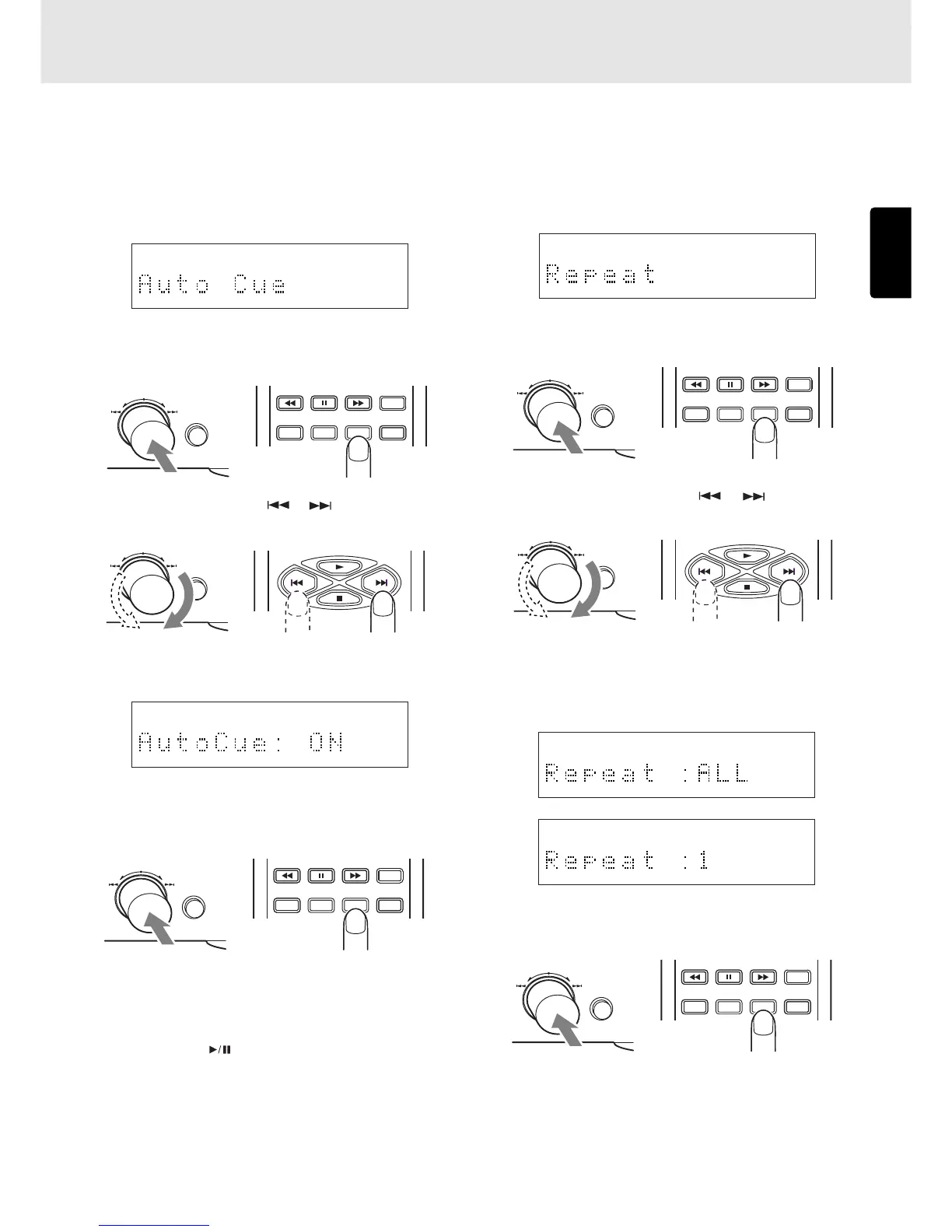 control unit) is pressed while “Auto Cue: ON” is displayed,