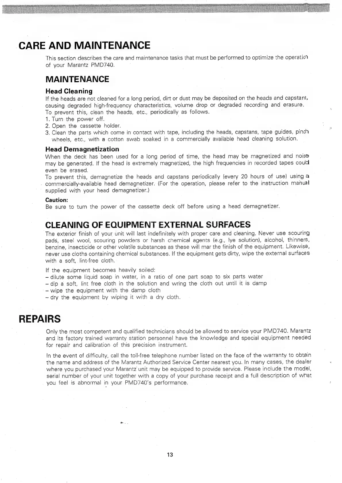 Marantz PROFESSIONAL PMD740 - Care and Maintenance; Cleaning of Equipment External Surfaces