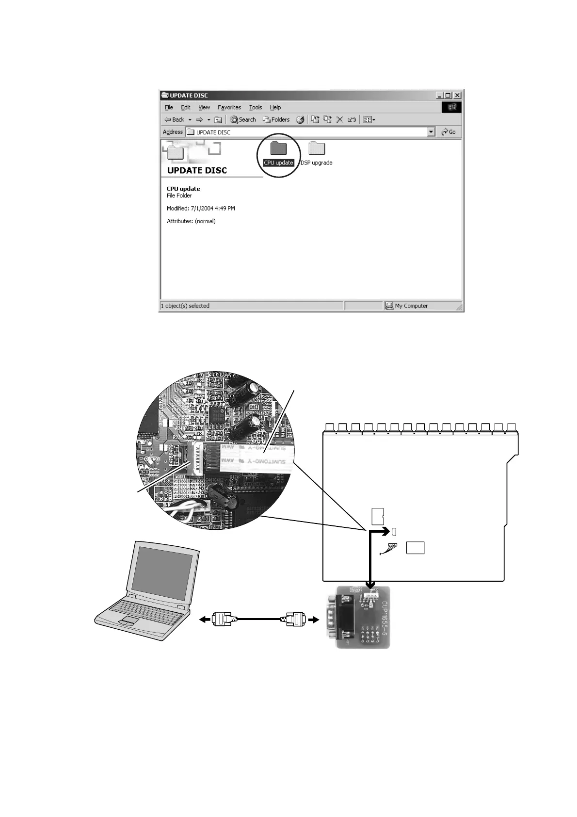 2. RS-232C ケーブルでマイコンアップデートキットと PC を