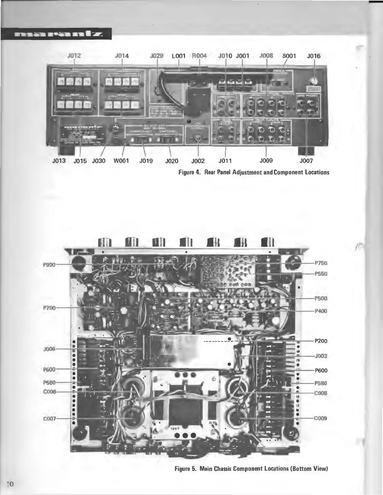 Marantz QUADRADIAL 4 - Rear Panel Adjustment and Component Locations; Main Chassis Component Locations (Bottom View)