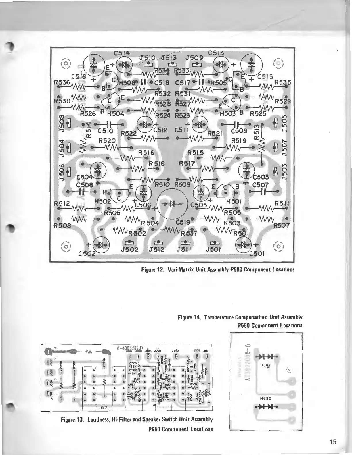 Marantz QUADRADIAL 4 - Vari-Matrix Unit Assembly P500 Component Locations; Loudness, Hi-Filter and Speaker Switch Unit Assembly P550 Component Locations; Temperature Compensation Unit Assembly P580 Component Locations