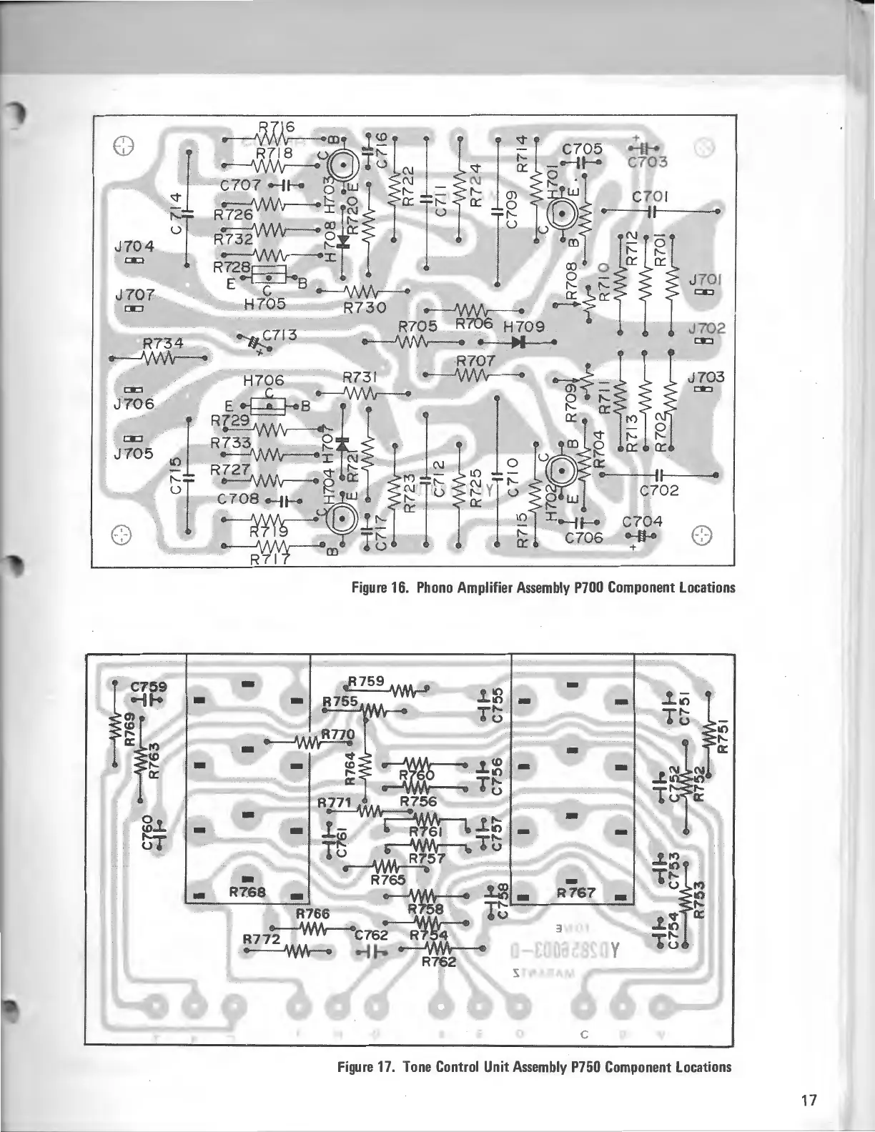 Marantz QUADRADIAL 4 - Phono Amplifier Assembly P700 Component Locations; Tone Control Unit Assembly P750 Component Locations