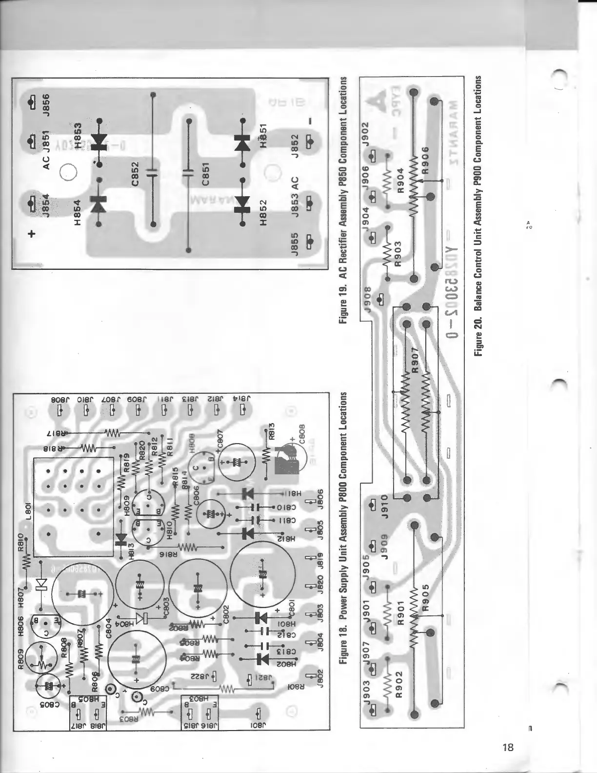 Marantz QUADRADIAL 4 - Power Supply Unit Assembly P800 Component Locations; AC Rectifier Assembly P850 Component Locations; Balance Control Unit Assembly P900 Component Locations