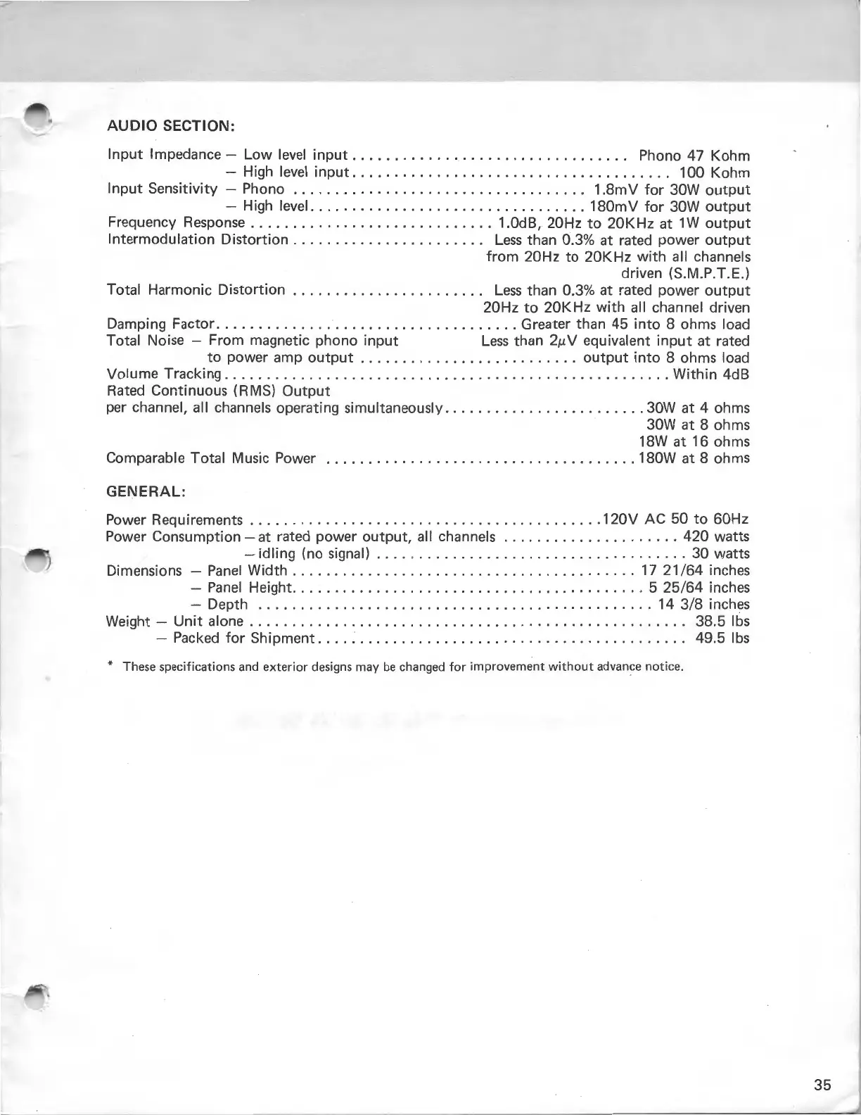 * These specifications and