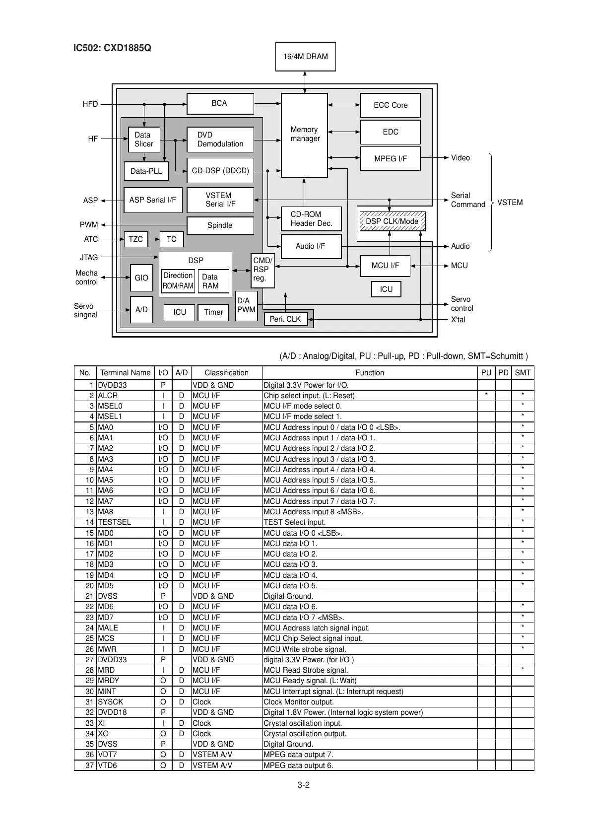 (A/D : Analog/Digital, PU : Pull-up, PD : Pull-down, SMT=Schumitt )