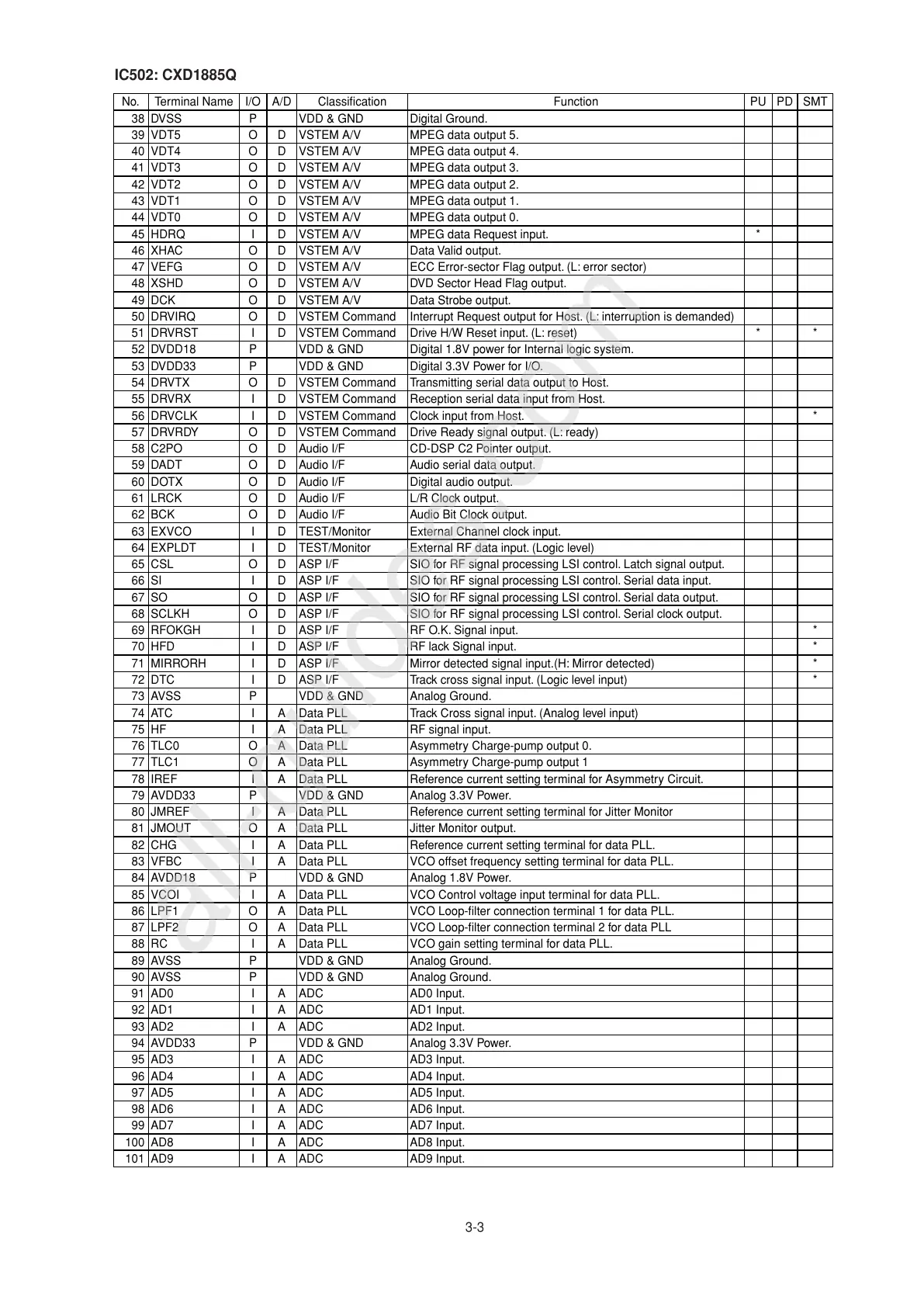 No. Terminal Name I/O A/D Classifi cation Function PU PD SMT