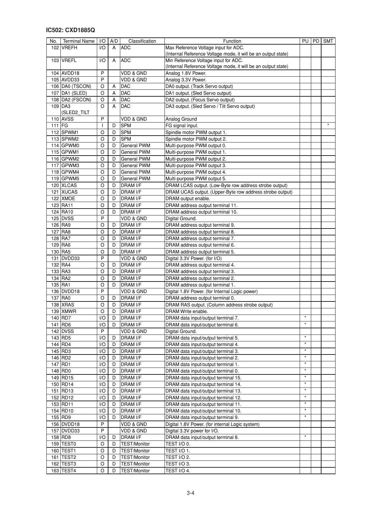 No. Terminal Name I/O A/D Classifi cation Function PU PD SMT