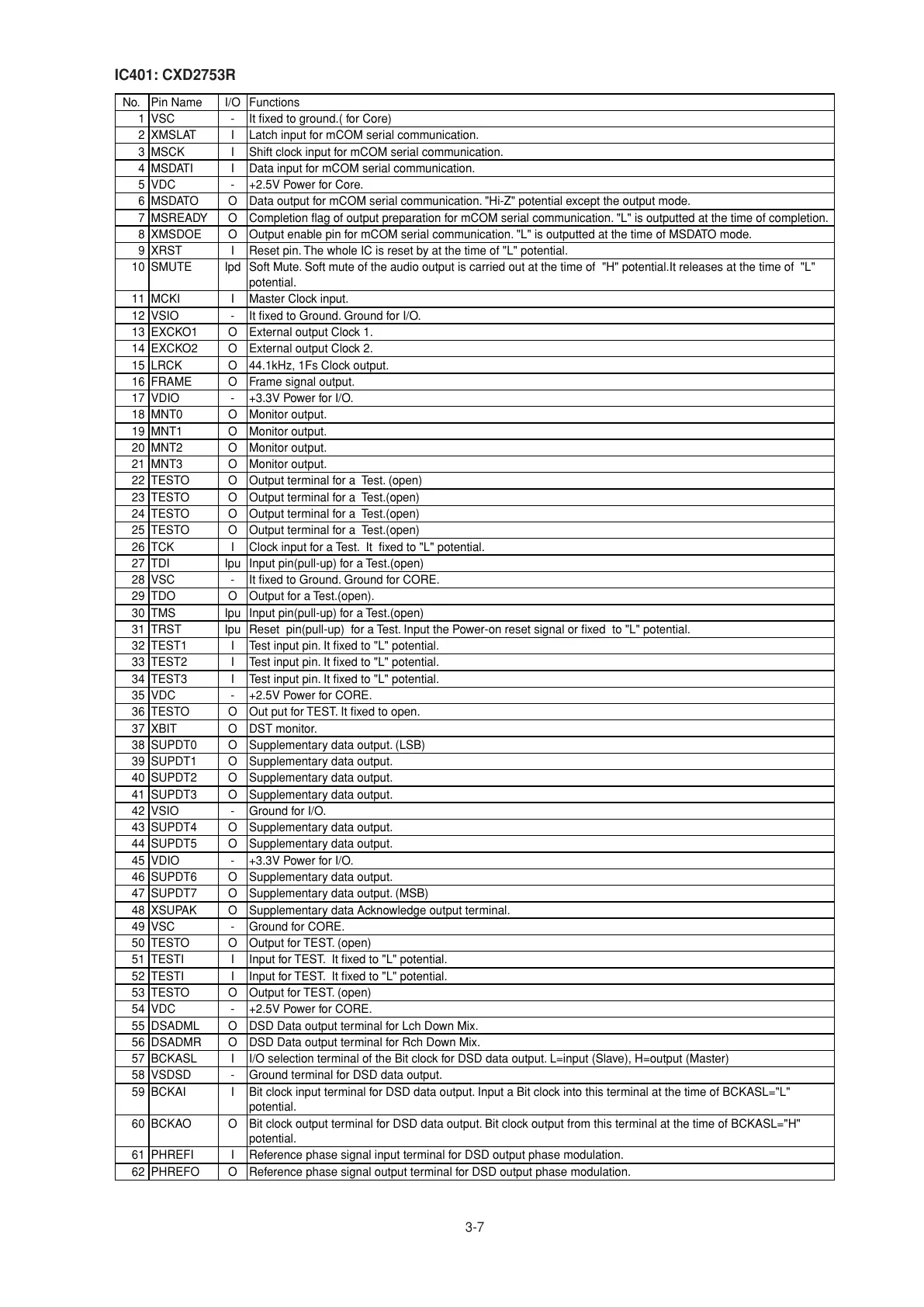 58 VSDSD - Ground terminal for DSD data output.
