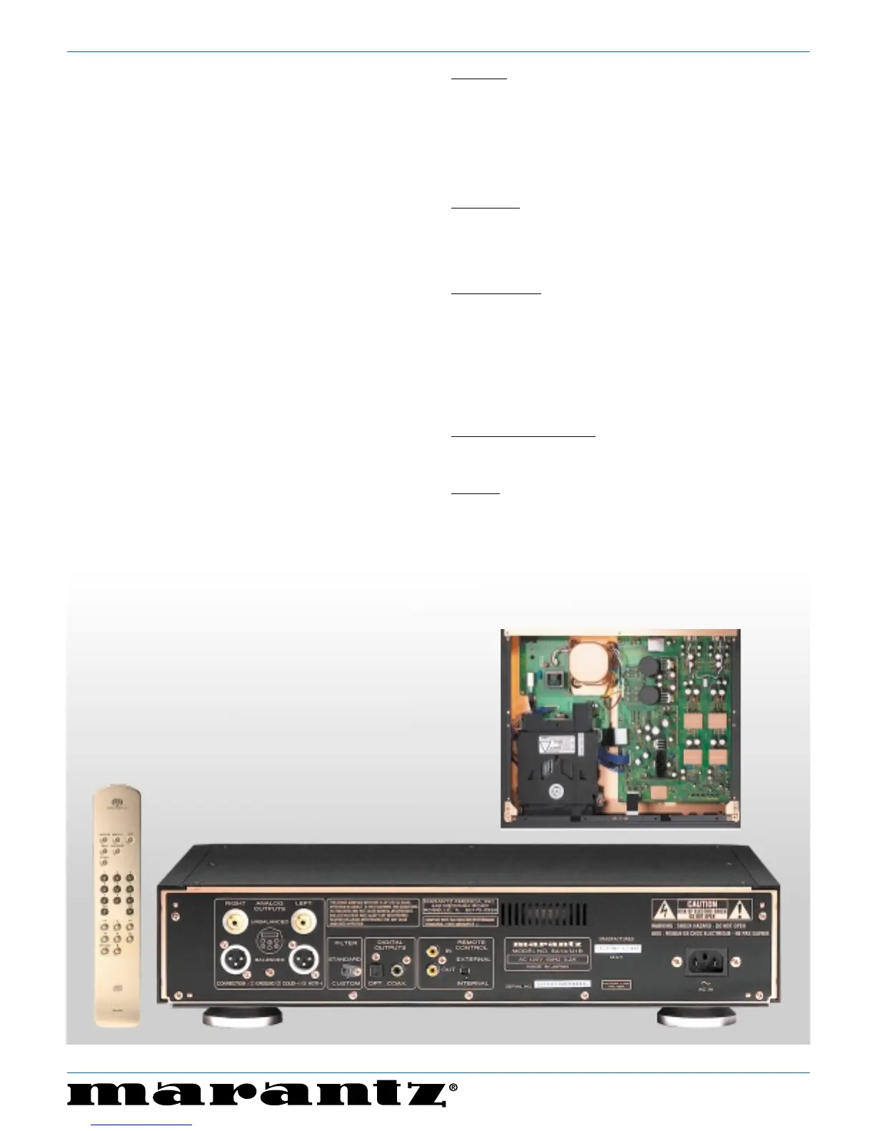 All specifications, dimensions and weights are subject to change without notice. ©2001 Marantz America, Inc. 04/01