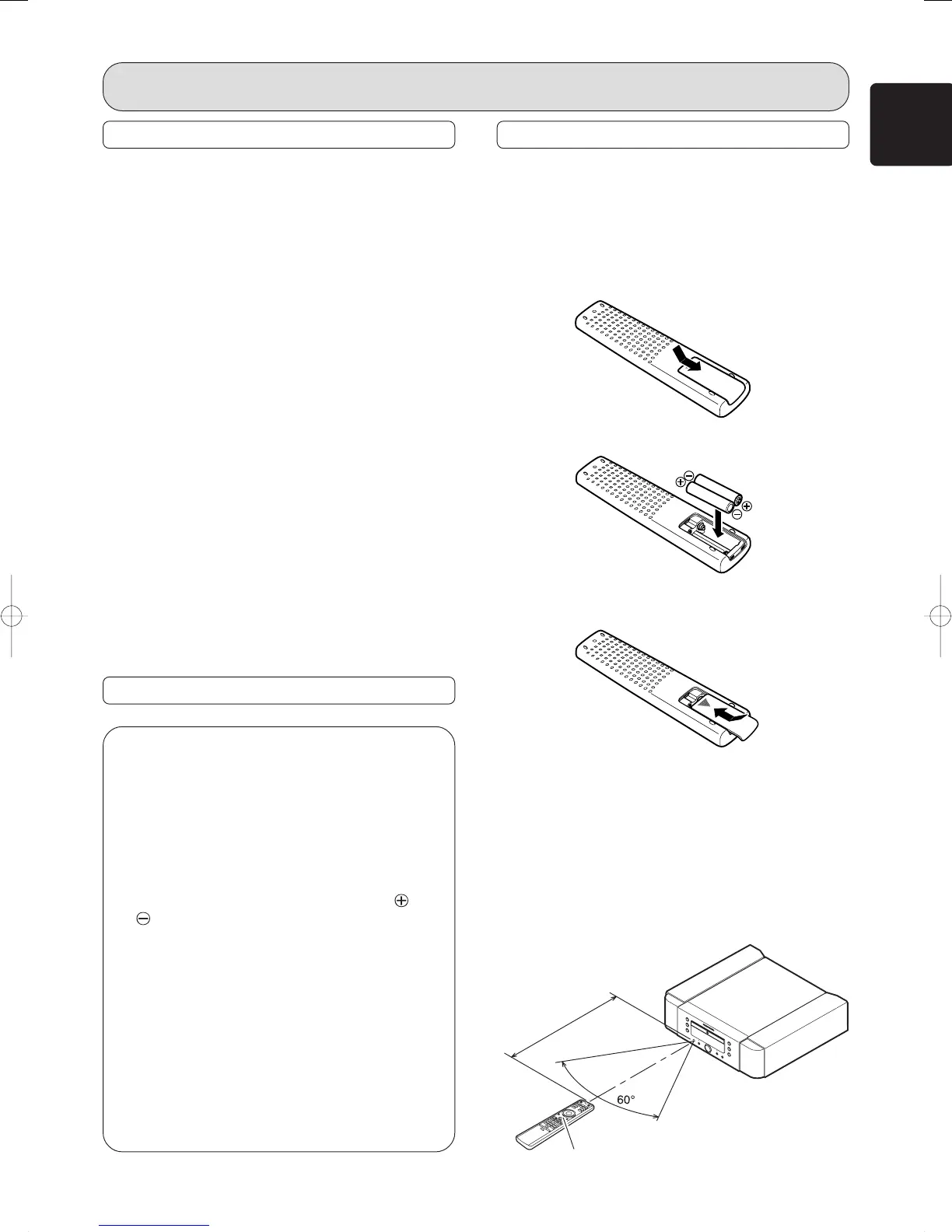 • Remove the batteries from the remote control unit if