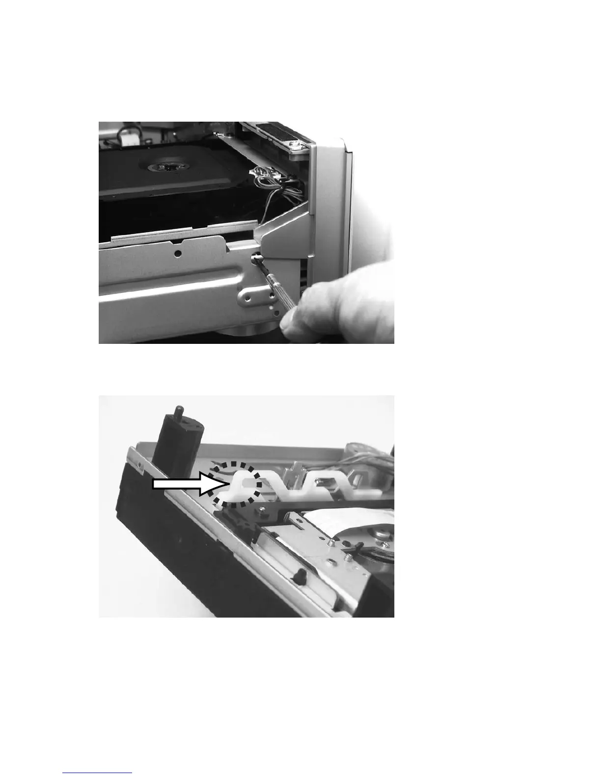 This picture shows the unit upside down. The eject lever is pointed by the arrow.