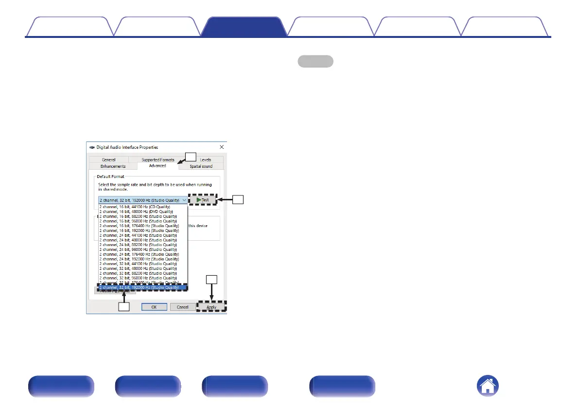 It is recommended that “2 channel, 32 bit, 192000 Hz (Studio