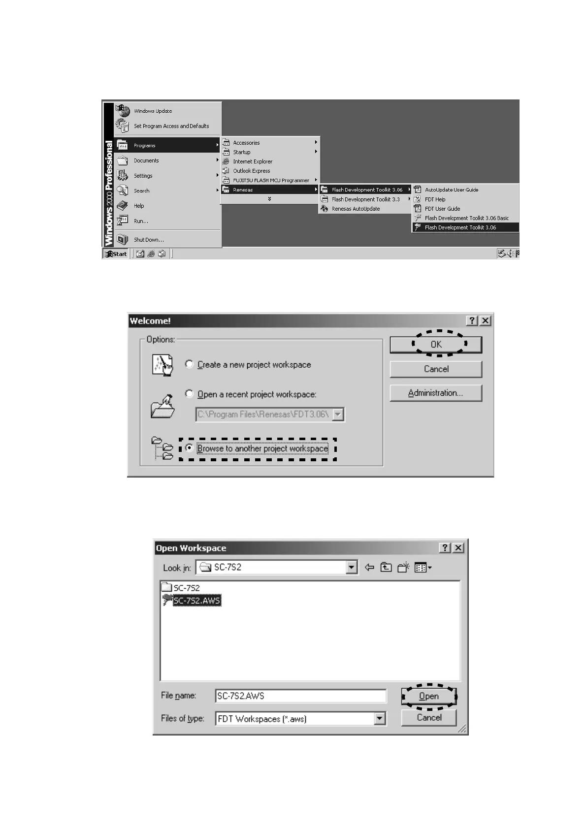 7. Start, Programs, Renesas, Flash Development Toolkit