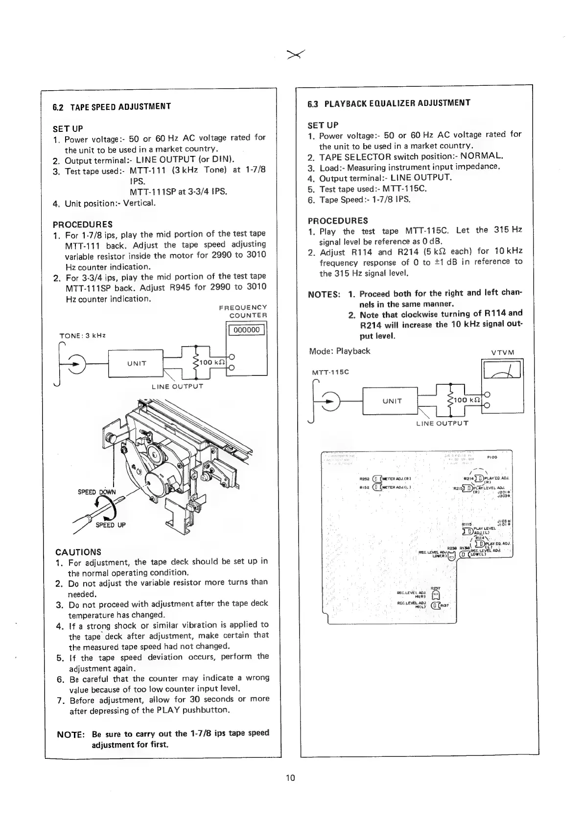 Marantz SD1000 - Electrical Adjustments (Continued); Tape Speed Adjustment Procedure; Playback Equalizer Adjustment Guide