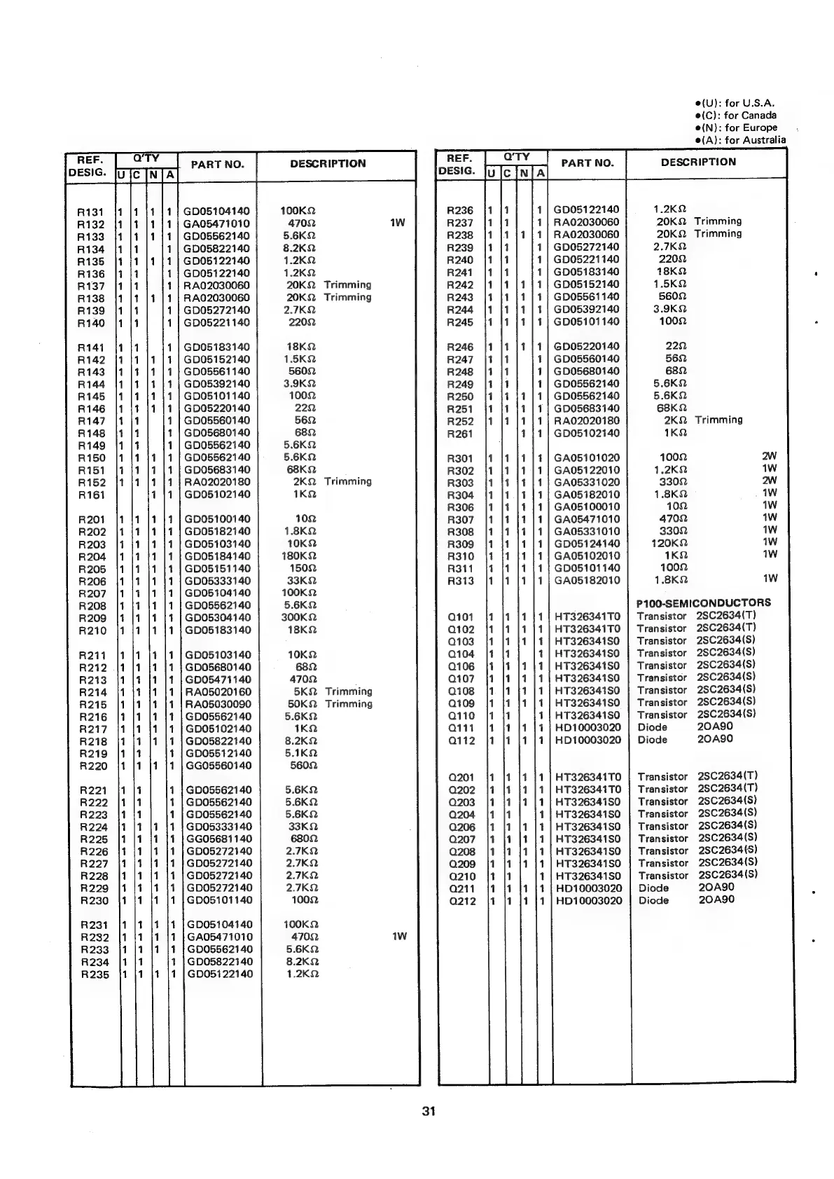 Marantz SD1000 - Electrical Parts List (Continued); P100 Resistors and Semiconductors