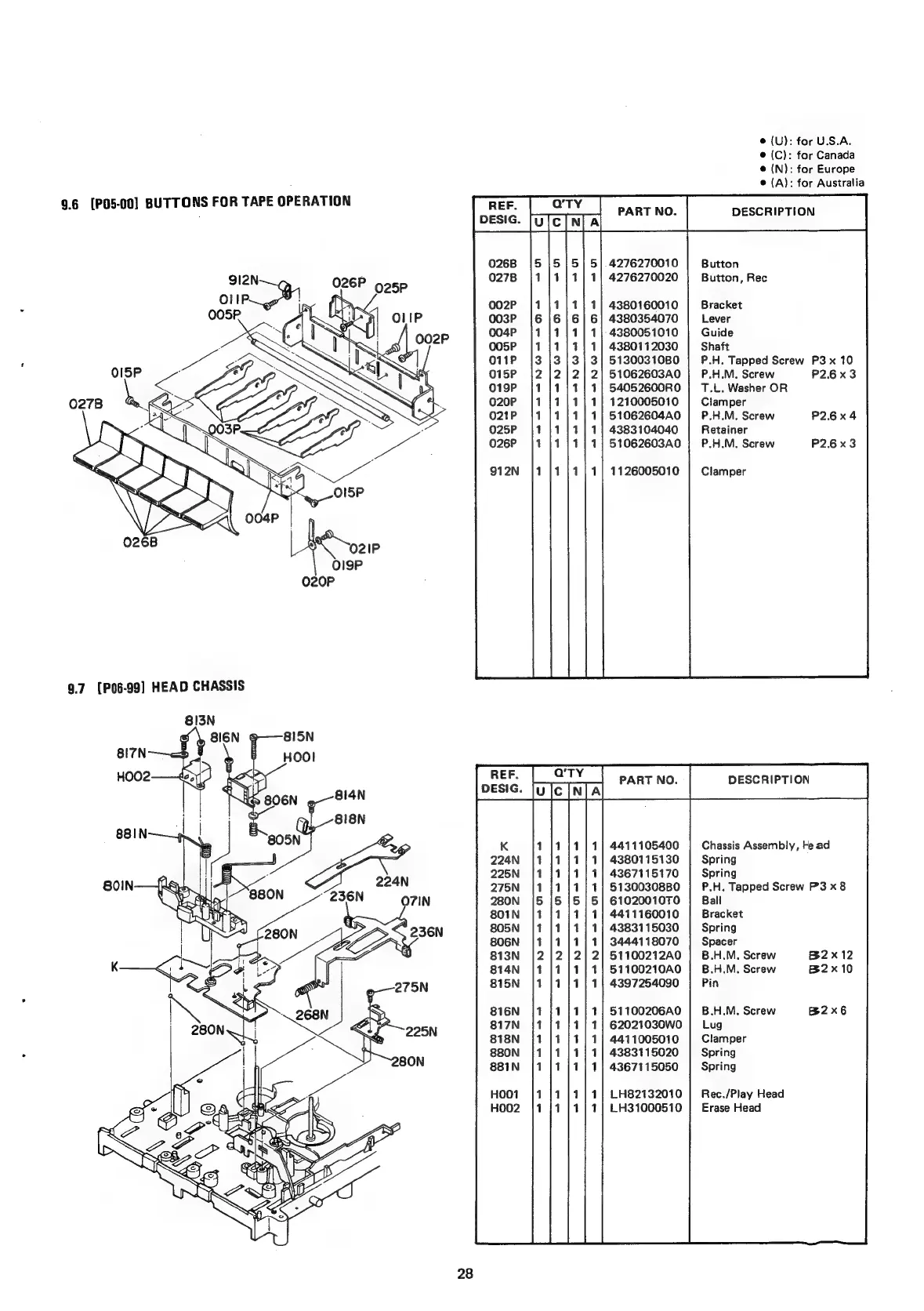 Marantz SD4000 - Tape Operation Buttons Parts; Head Chassis Parts