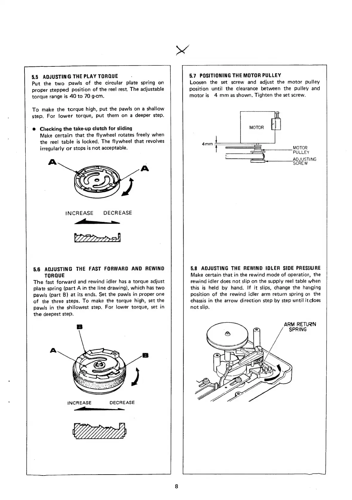 Marantz SD4000 - Adjusting Play Torque; Adjusting FF;REW Torque; Positioning the Motor Pulley; Adjusting Rewind Idler Side Pressure