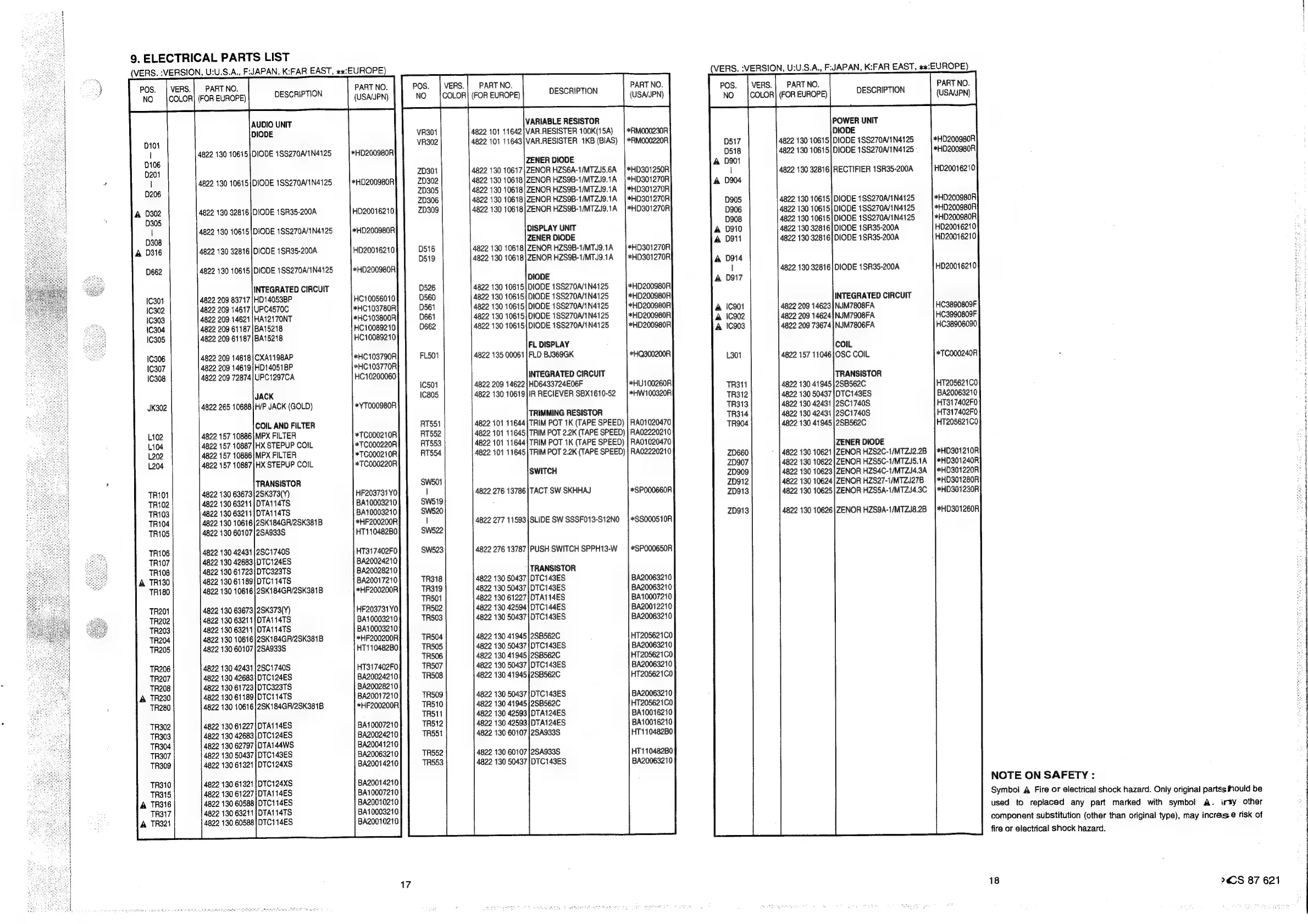 Marantz SD555 - Electrical Parts List; Note on Safety