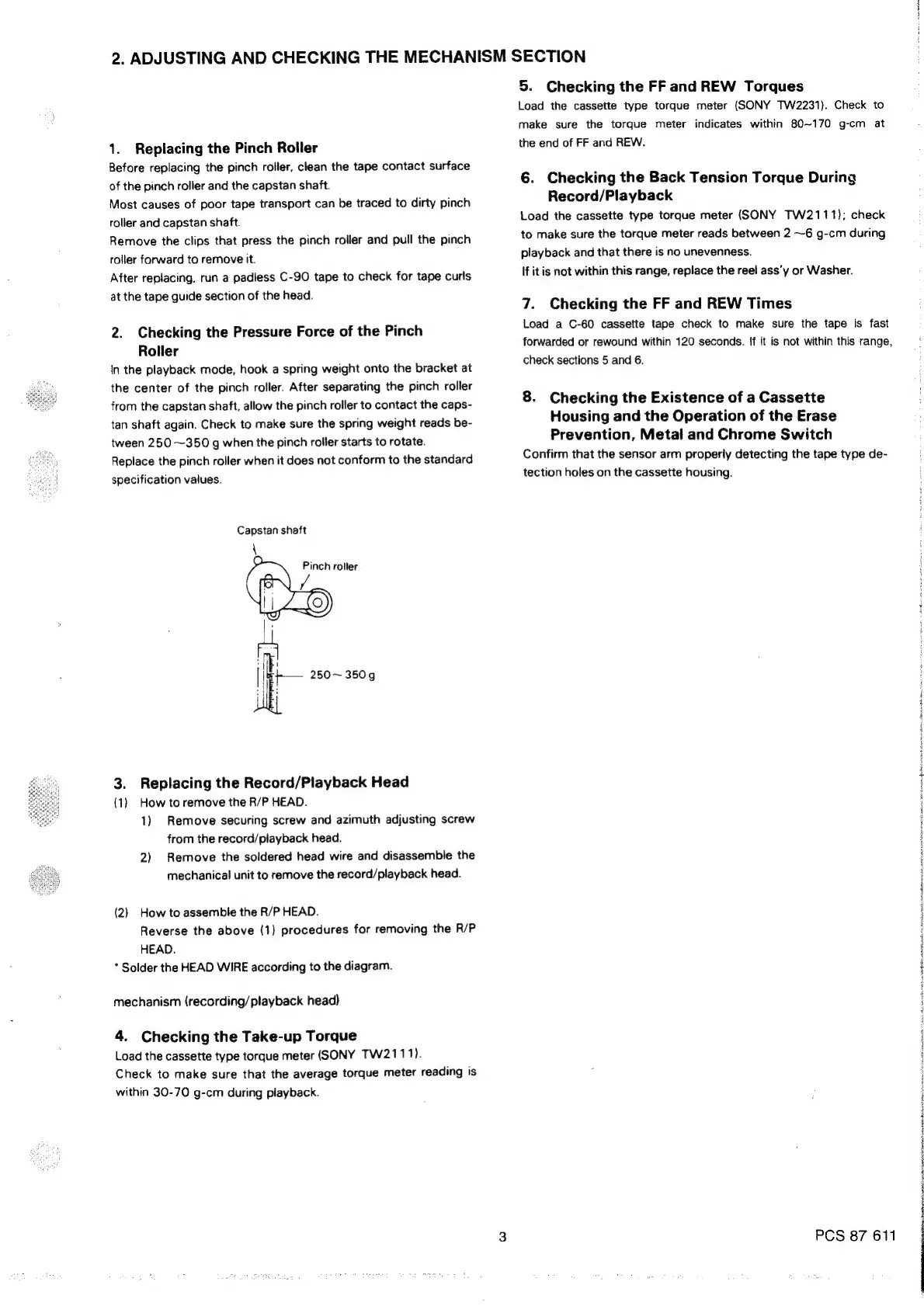 Marantz SD555 - Adjusting and Checking the Mechanism Section