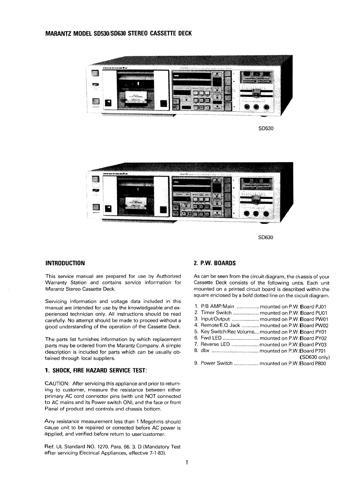 Marantz SD630 - Introduction and Safety Precautions; Shock and Fire Hazard Service Test