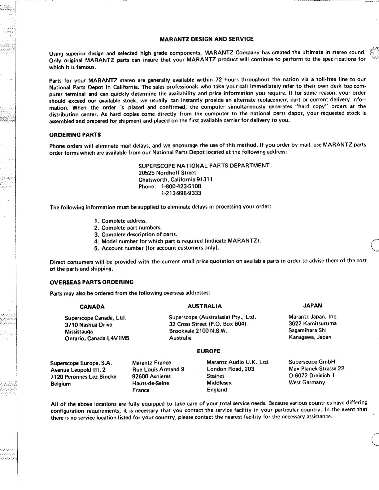 Marantz SD9000 - Ordering Parts