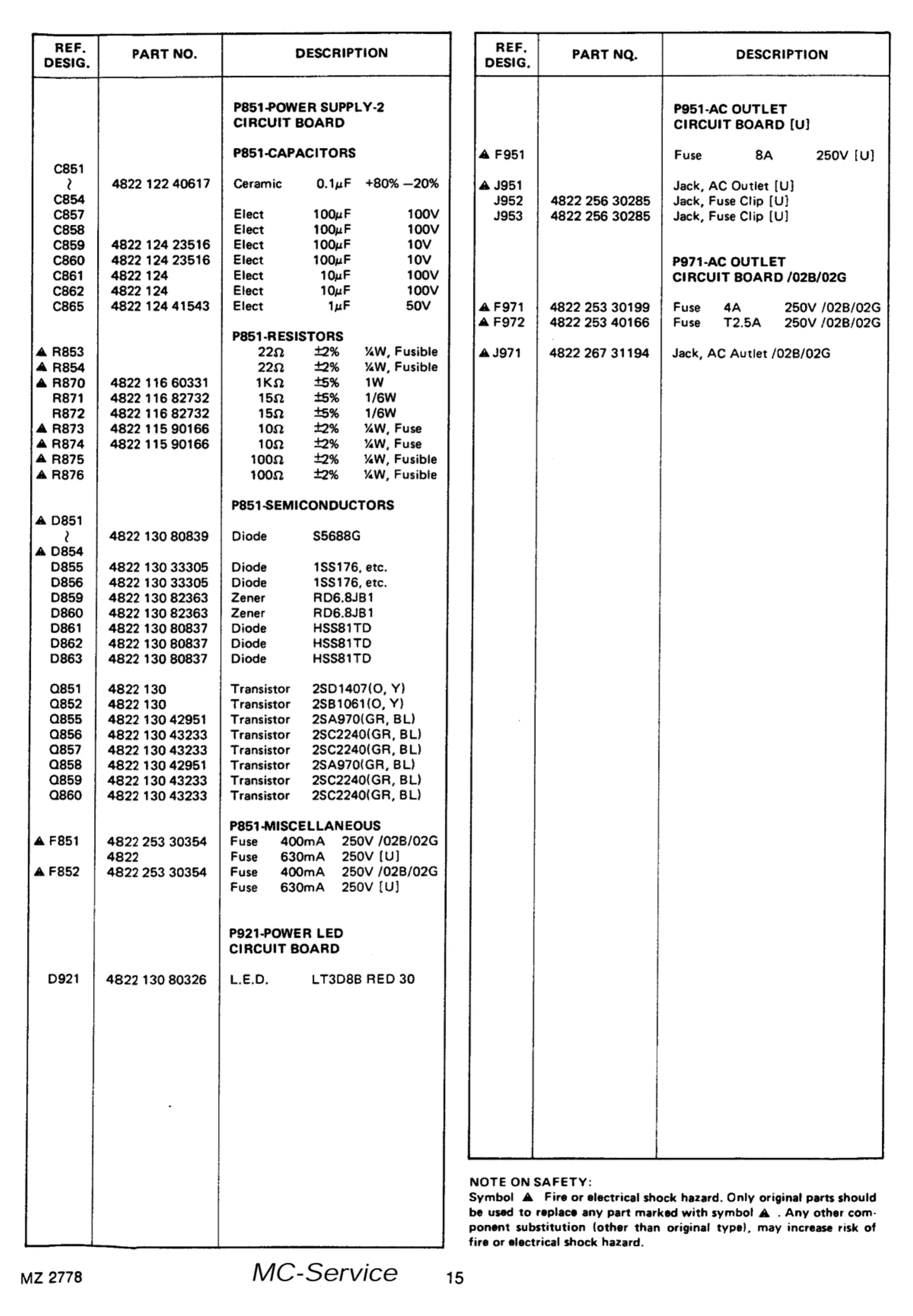 Marantz SM-80 - Safety Precautions