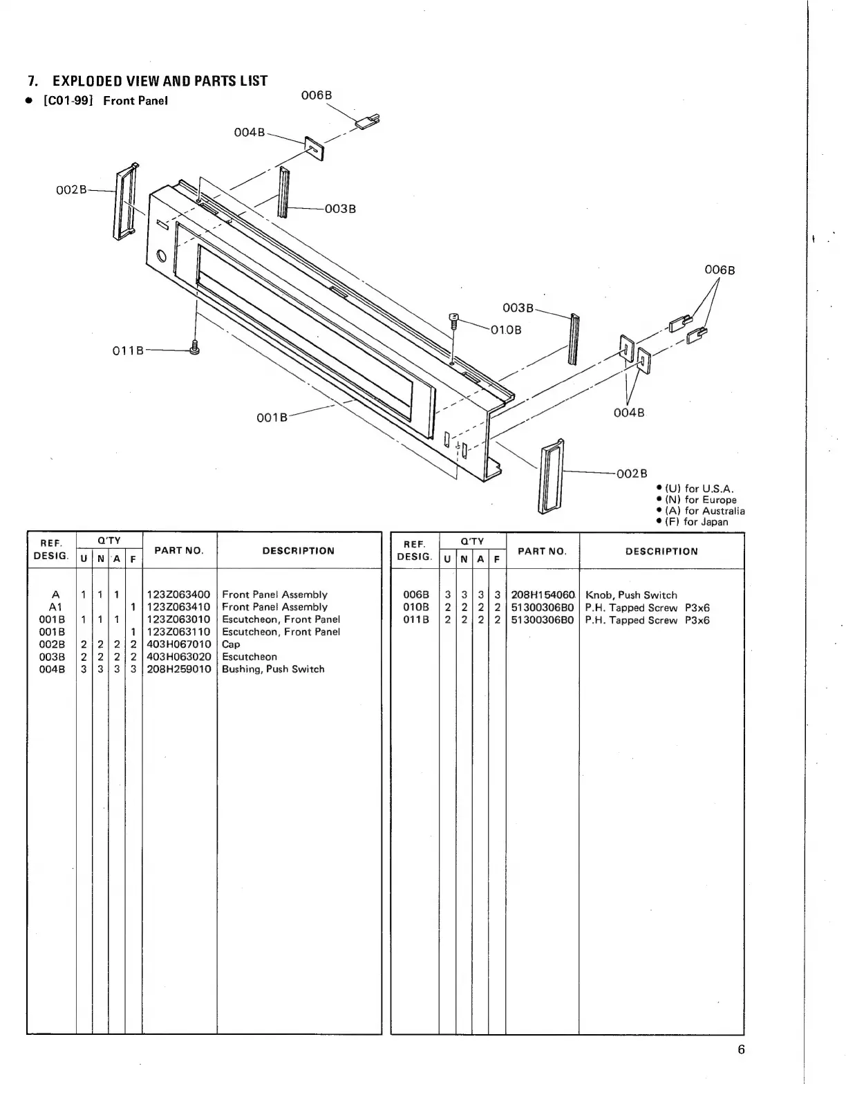 Marantz SM500DC - Exploded Views and Parts Lists; Front Panel Parts List