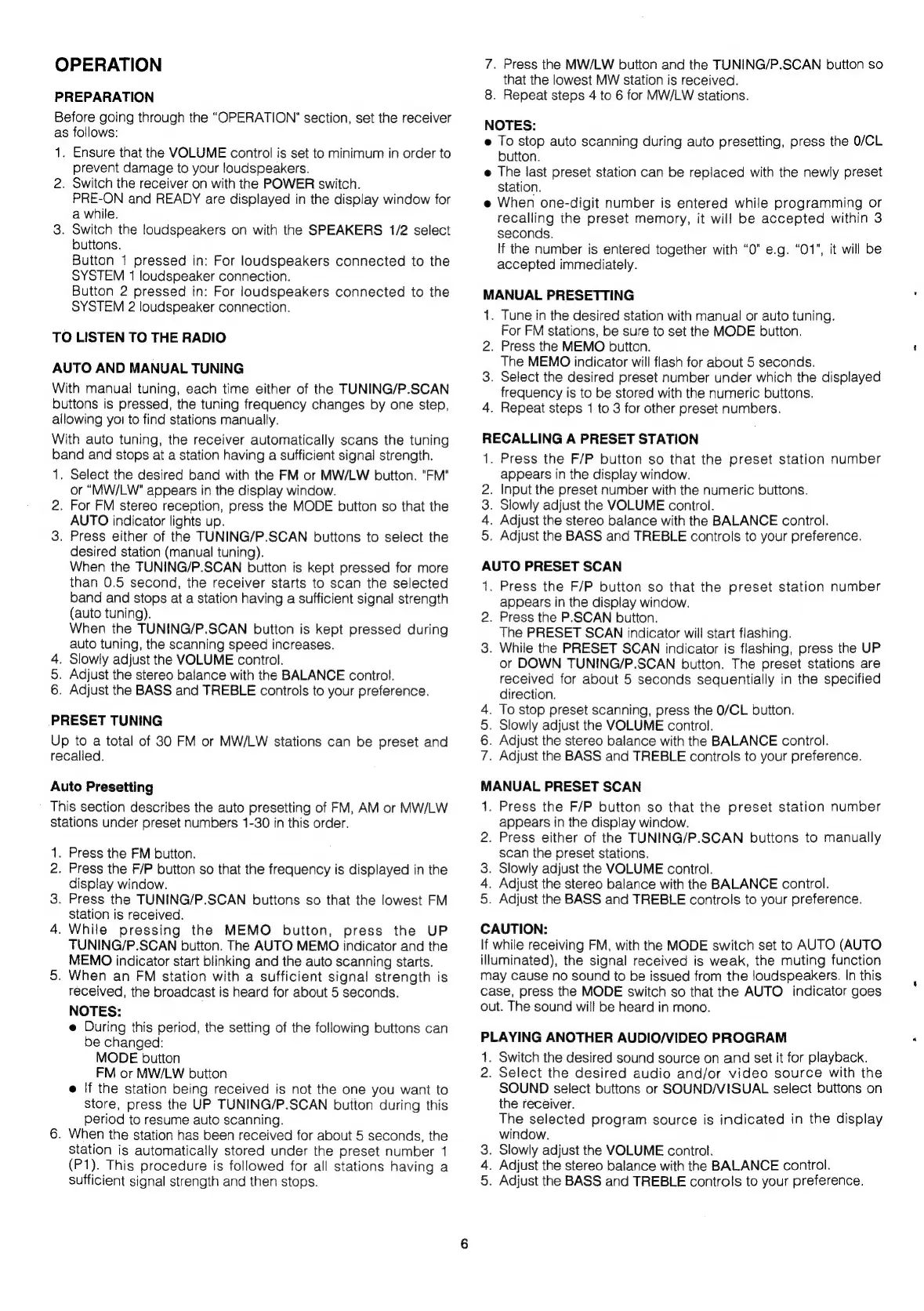 Marantz SR-63 - Operation Instructions; Listening to the Radio; Preset Tuning; Auto Presetting