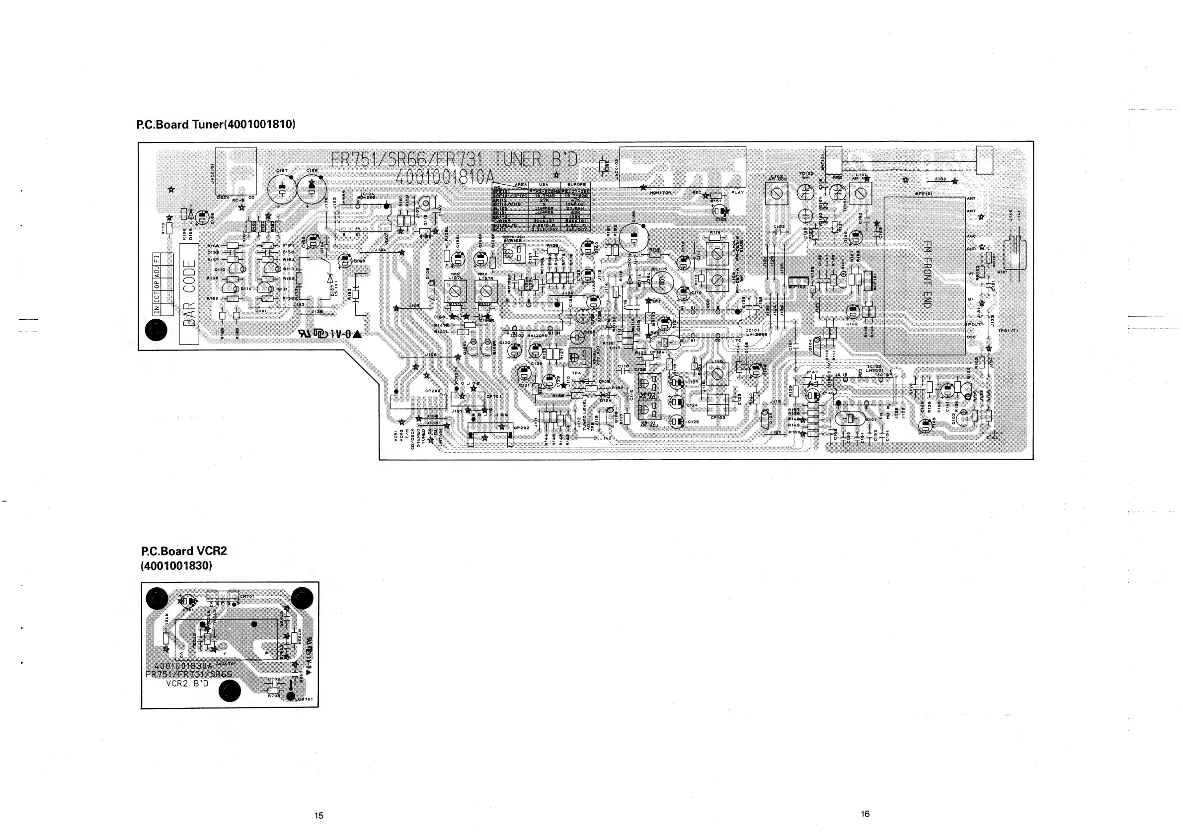 Marantz SR-66 - Printed Circuit Board Diagrams; VCR2 Board Diagram; Tuner Board Diagram