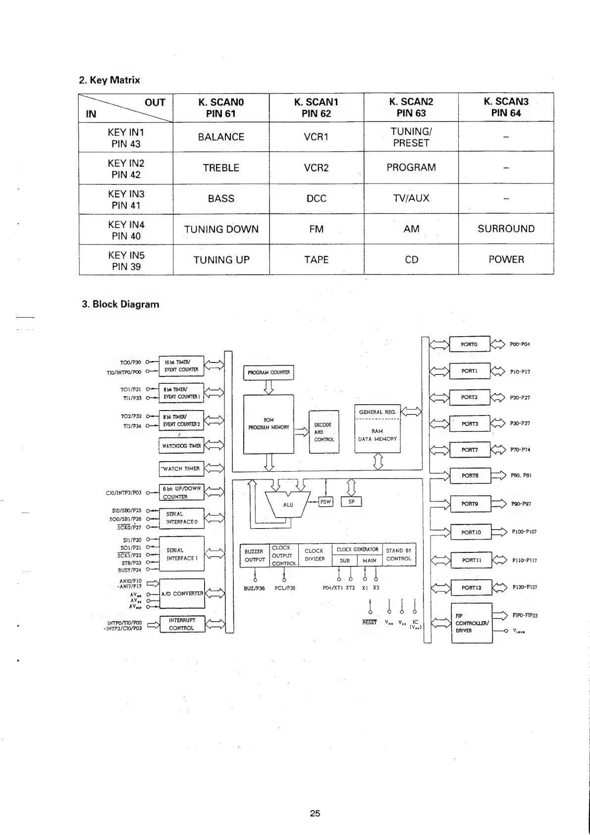 Marantz SR-66 - SERVICE TEST PROGRAM OF THE MICROPROCESSOR (continued); Microprocessor Key Matrix (continued); Microprocessor Block Diagram