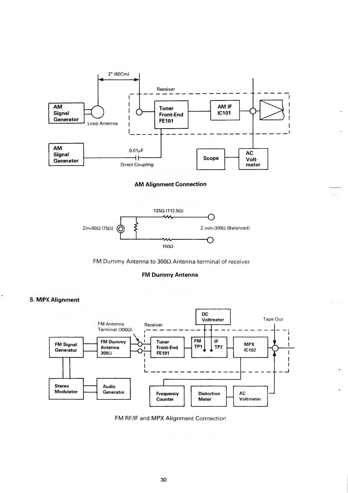 Marantz SR-66 - ALIGNMENT PROCEDURES (continued); AM and FM Alignment Connection Diagrams