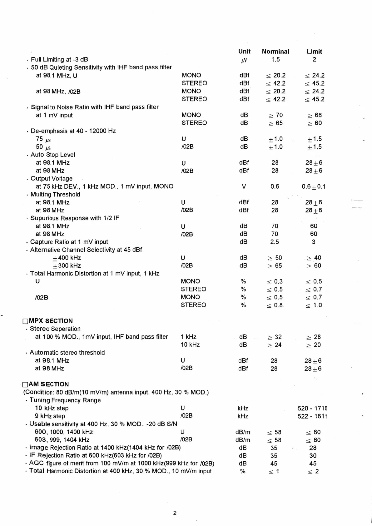 Marantz SR-66 - TECHNICAL SPECIFICATIONS (continued); FM SECTION; MPX SECTION; AM SECTION
