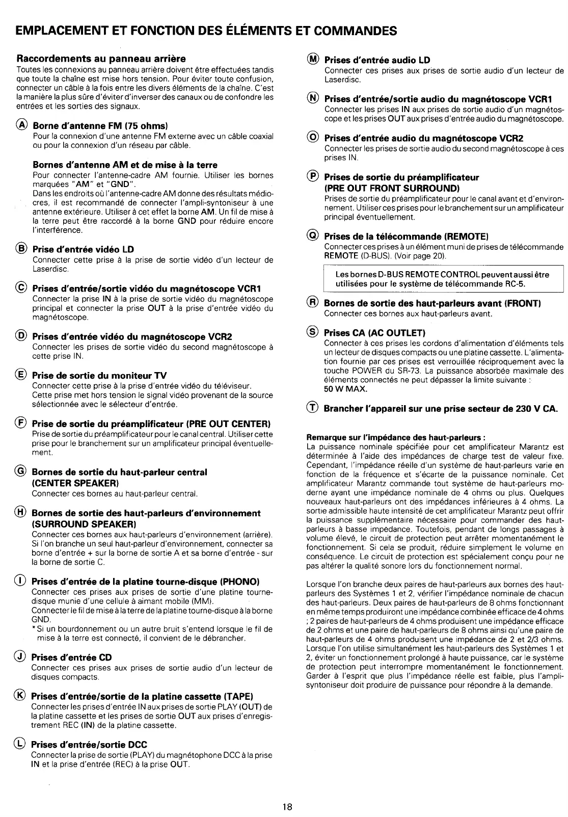 Marantz SR-73 - Emplacementet Fonction des Elements Et Commandbs; Raccordements Au Ppamneau Amri@Re